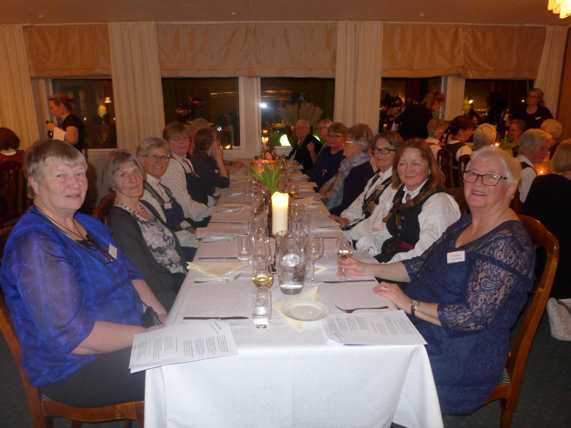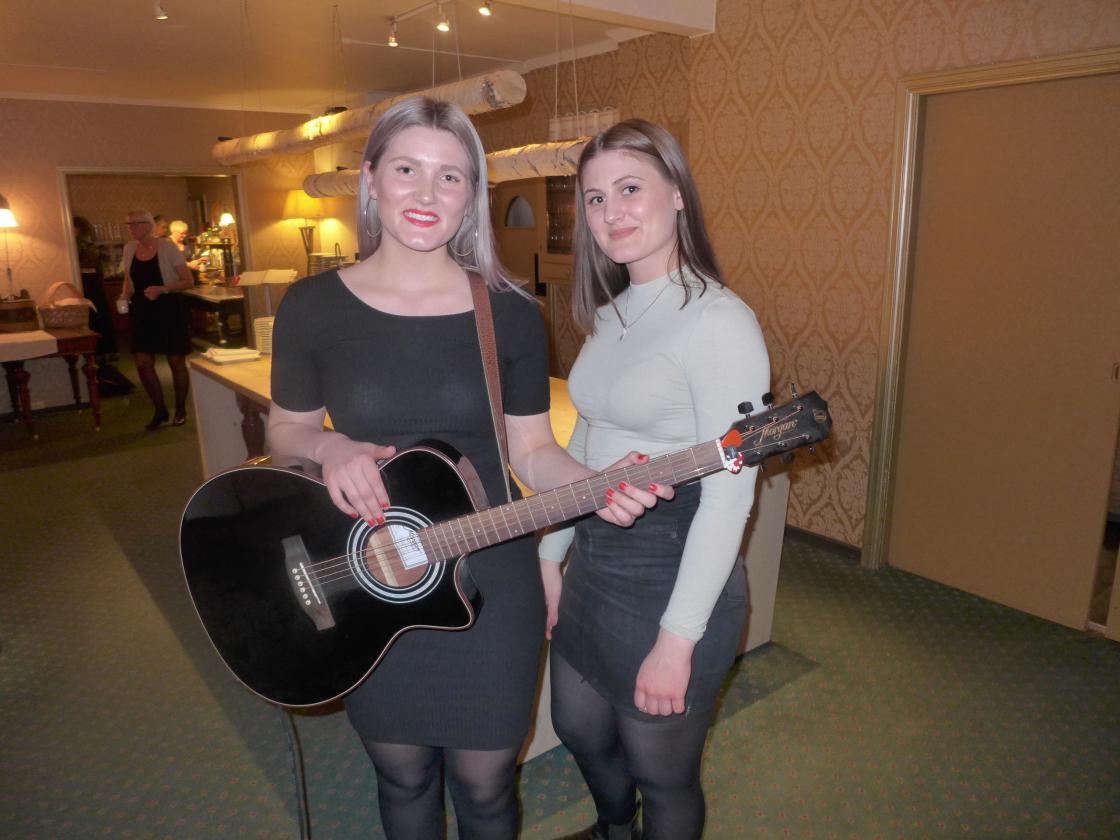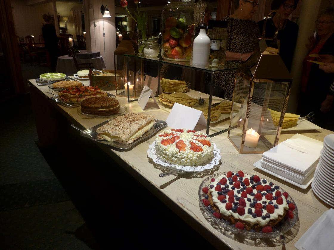 Under måltidet var det både allsong og underhaldning. Sigrid Elise Fossan underheldt med song og gitarspel. ( Søster hennar var teknisk assistent). Det vart eit GODT og langt bordsete. Kvelden vart avslutta med eit gedigent kakebord med kaffi og prat. Det gode sosiale samværet..