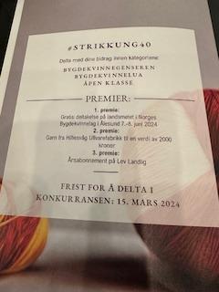 - Premie: Gratis deltakelse på «Landsmøtet i Norges Bygdekvinnelag» i Ålesund 7.-8. juni 2024.