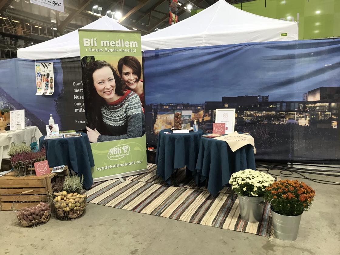Hedmark Bygdekvinnelag stilte med en flott og innbydende stand under Midt i Matfatet i Vikingskipet Hamar en helg i september. Takk til alle som tok en tur innom!