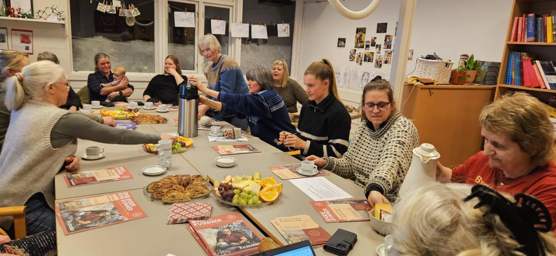 24. 02. 2026 var Liv K, og Siv frå distriktstyret og Liv Spilde frå Bjørgum Bygdekvinnelag på møte i Eksingedalen.