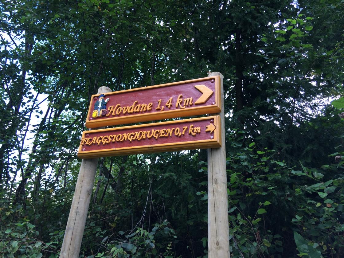 No er prosjektet på det næraste ferdig. Me har fått opp ei plakat-tavle med kart som viser alternative stiar og turvegar i området og skilt som viser veg opp til gapahuken. Her manglar det no berre litt betre merking av vegen vidare oppover.