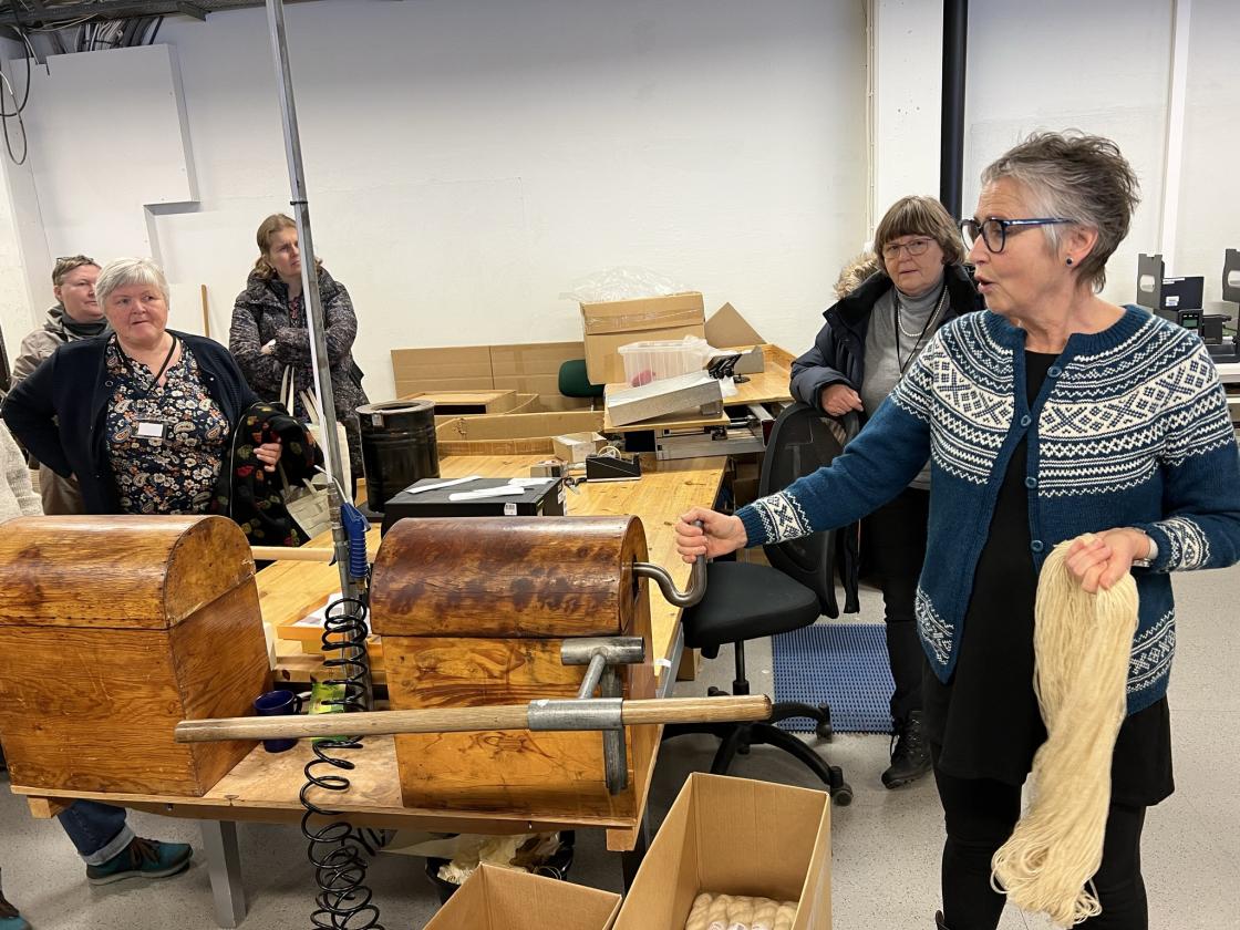 Turen gikk så videre til Rauma Ullvarefabrikk, her fikk vi historien om fabrikken, omvisning og så fikk vi handlet garn etter smak og behag.