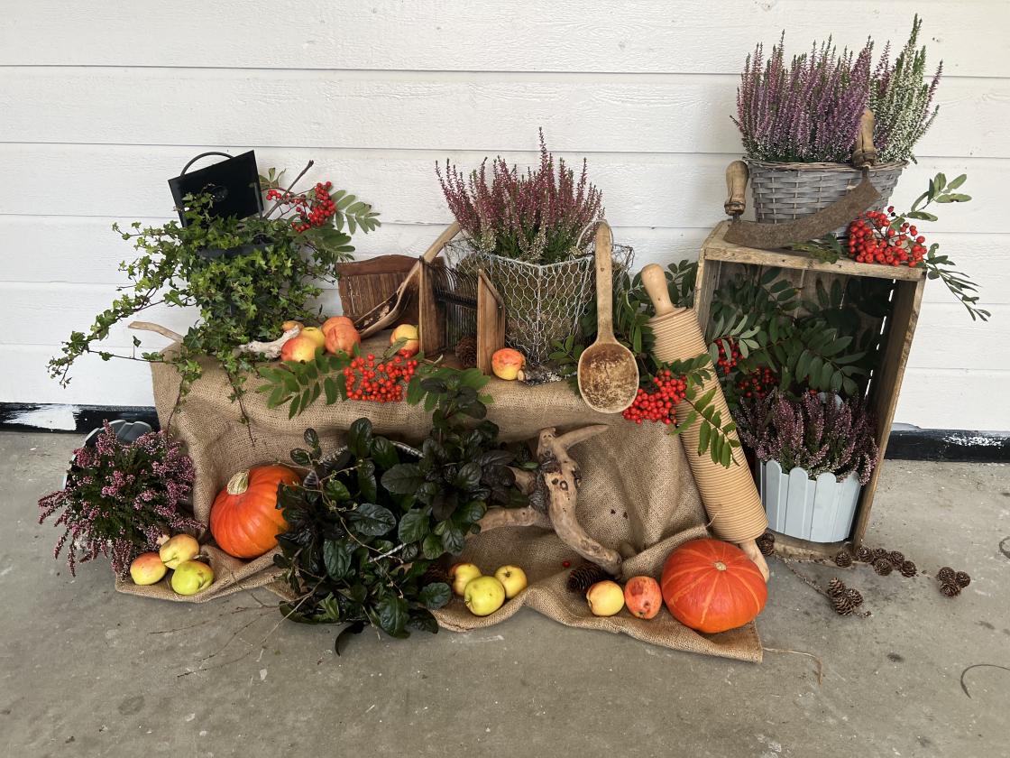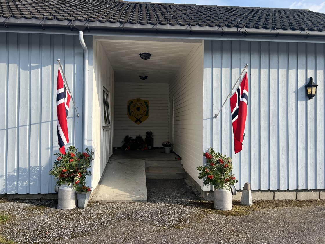Samlingen startet på Skotten skytterhuset som arrangørene hadde pyntet med fine høstfarger.