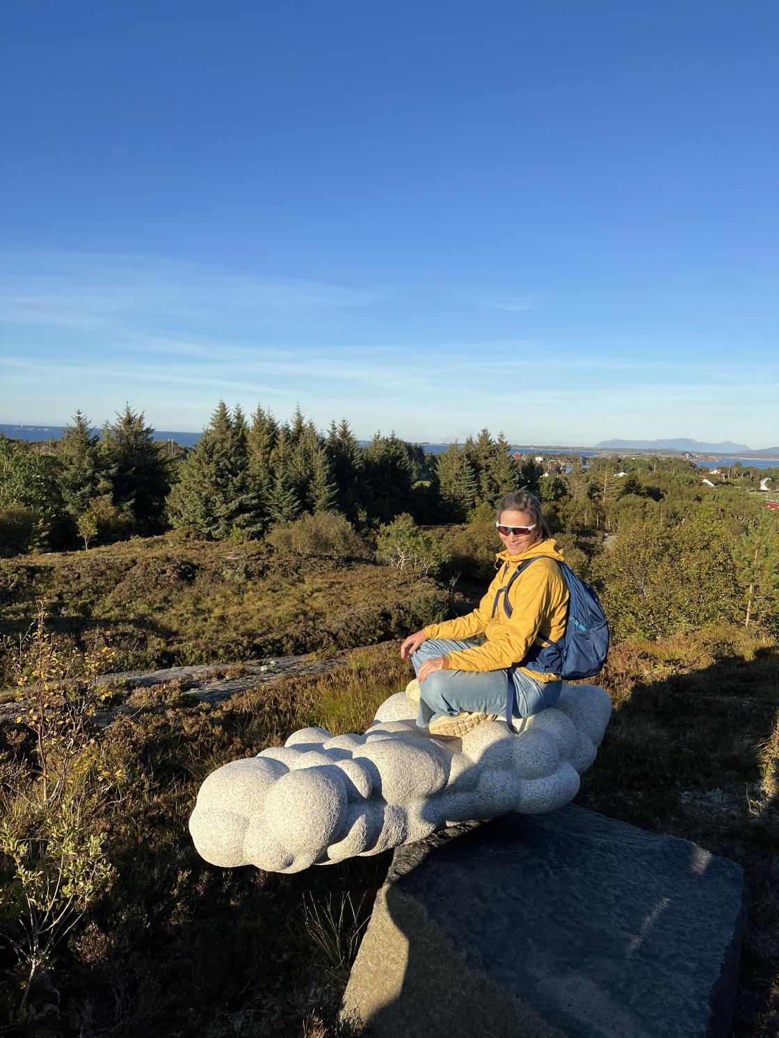 Vi kjørte tilbake til Vevang og gikk Kulturstien. Denne er laget av stiftelsen Steinløftet som er en frivillig organisasjon med primus motor Torild Storvik Malmedal som har ledet prosjektet.