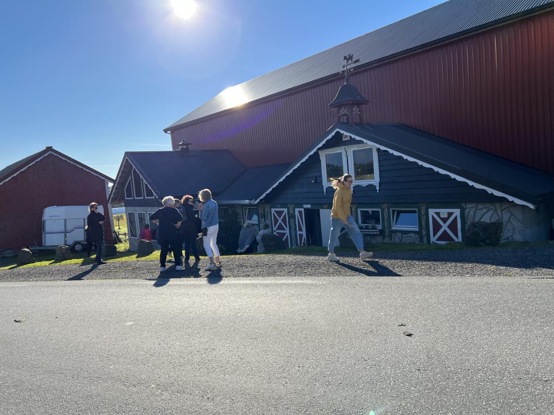 Her ble vi møtt med masse gode hjemmebakte boller og kake, som ble servert i låven med utsikt over hele Farstadstranden og Hustadvika. Vi fikk også høre om hvordan det er å drive gårdsbruk ute på kysten.