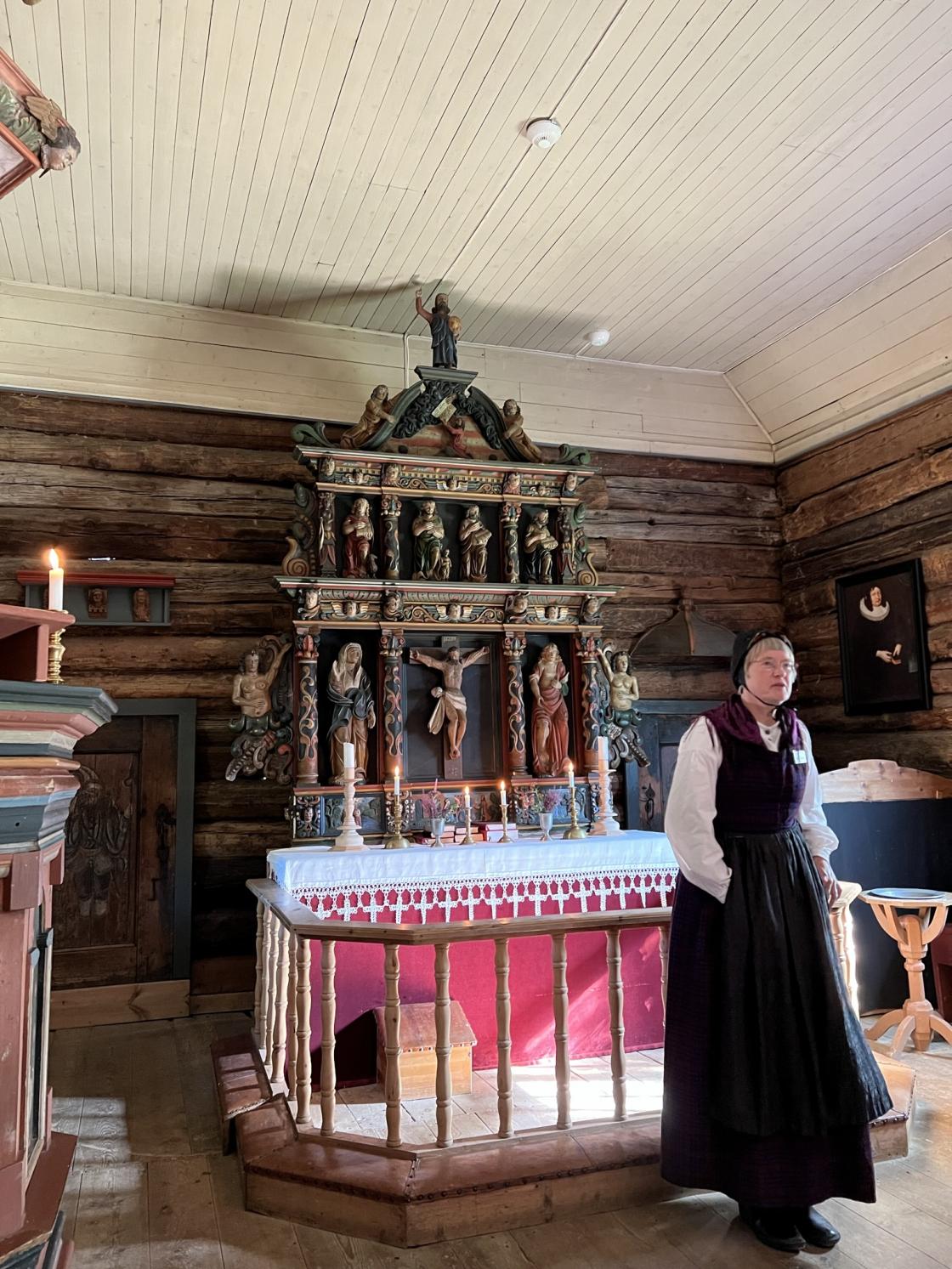 Etter dette tok vi turen til Romsdal museet. Her fikk vi se og høre om Romsdals bunaden.