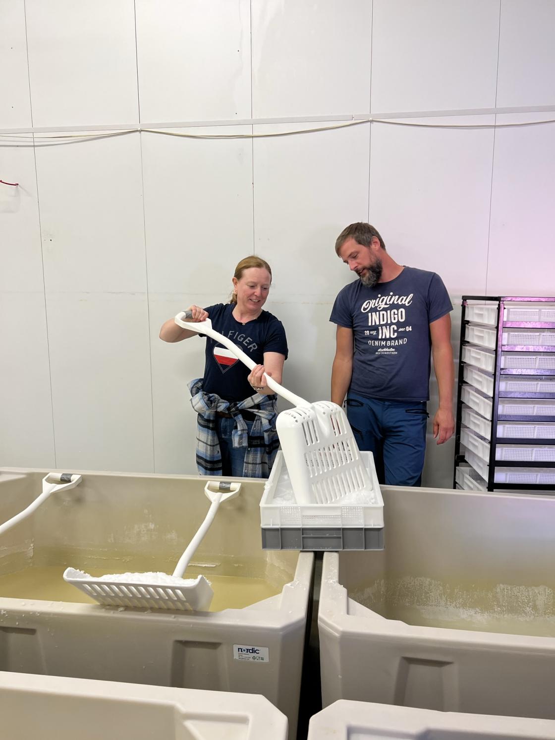Så gikk turen ut til bedriften Salt. Her fikk vi se og prøve oss litt på hvordan de produserer havsalt.