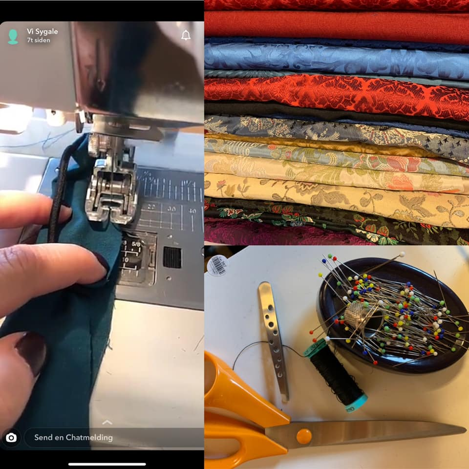 Det blir ein god del besøk, når ein driv som syerske. Det skal målast, tilpassast, prøvast og hentast. Ofte vankar det ein kaffikopp rundt kjøkenbordet. Det er mannen, Tor Inge, som har rolla som kaffikokar. Vi er sosiale folk som gjerne slår av ein prat ved kundane.