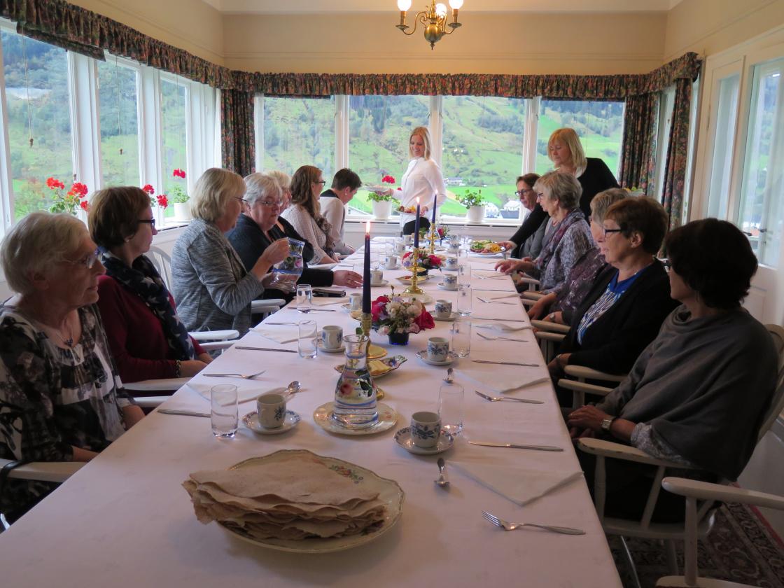 På Singerheimen vart vi mottekne av styrar Vigdis Loftesne,ho serverte spekemat tellerken,heimebake flatbrød, eplekake og kaffe. Ho fortalde om Herr og Fru Singer å alt dei hadde gjort for Olden og bygdene omkring. Vi fekk omvisning i huset og atelieret.