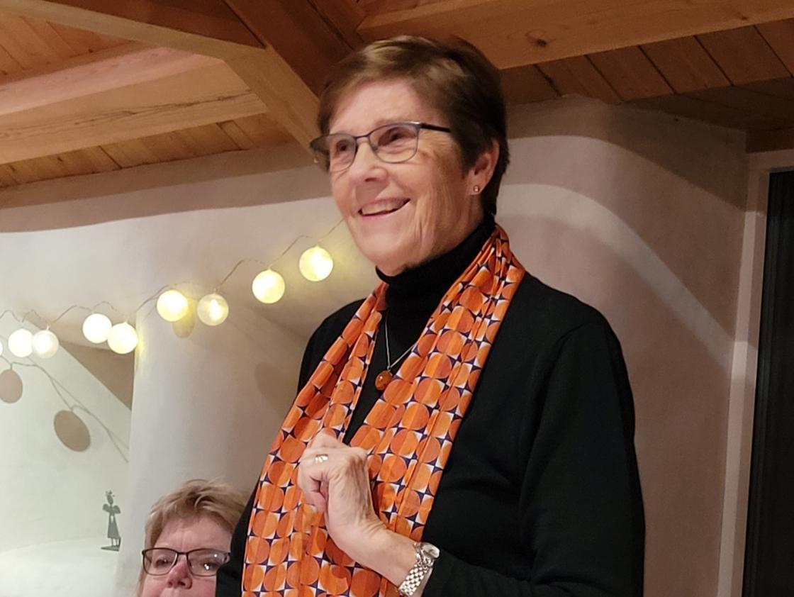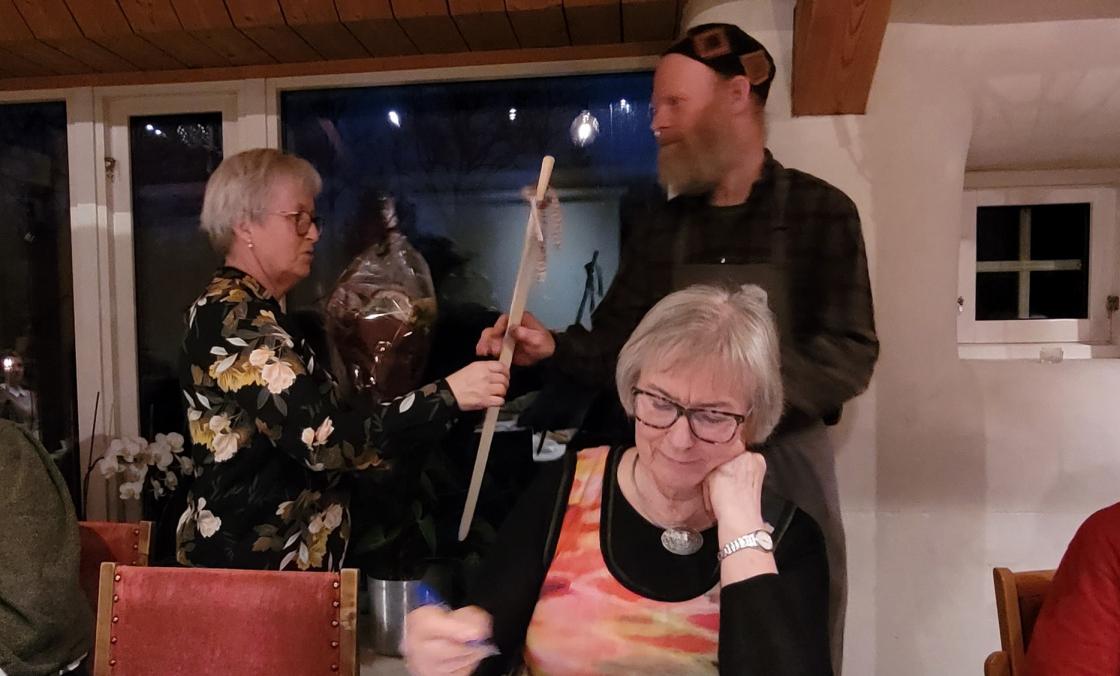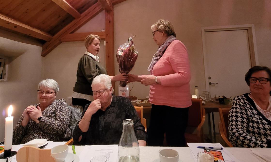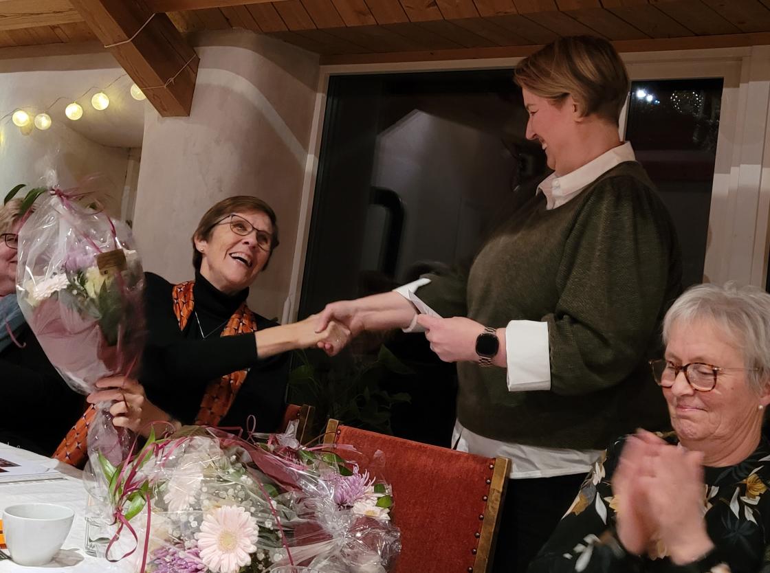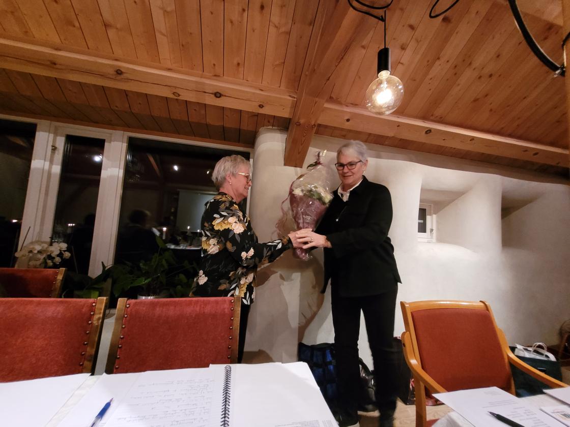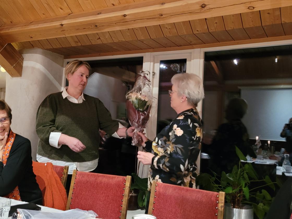 Tove overrakte blomst til leder Lene og takket for at hun tok gjenvalg.