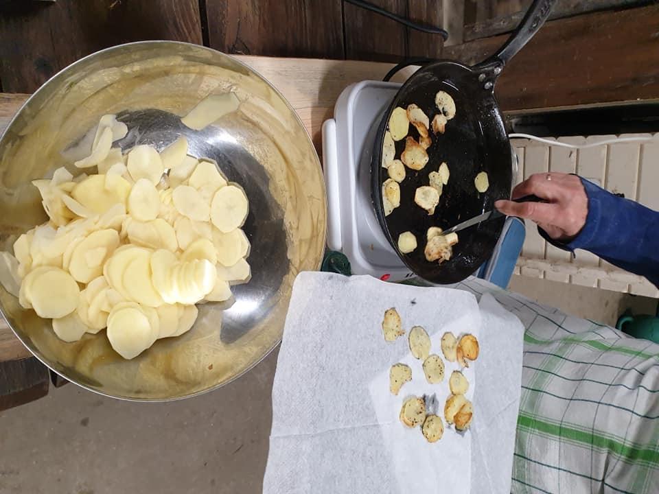 Vi laget potetlomper og grønnsaksuppe, sammen med barna.