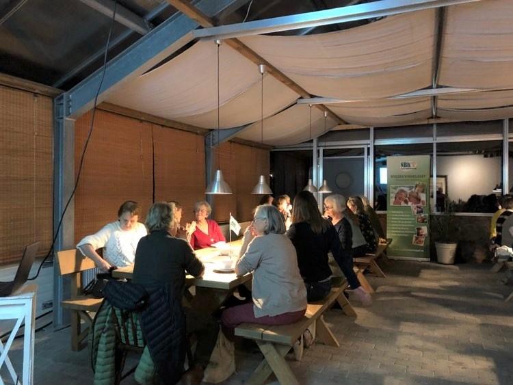 Det strømmet på med damer til Glasshuset på Blomstergård, det ble helt fullt! De som kom fikk hære om den nye logoen, nyttig info om organisasjonen, og en gjennomgang av hva og hvor man finner info på bygdekvinnelaget.no. Etter pause med kaffe og kaker fikk vi info om Studieforbundet kultur og tradisjon, Stiftelsen Fossnes og Solbø samt Gurvika. Vi fikk tips om å holde av datoene for årsmøtet,(1/3)Bygdekvinner på lading(25-26/3) og til 90.års jubileet18/6. Og helt til slutt var det visning av de nye T-skjortene og refleksvestene som styret har designet og trykket opp!