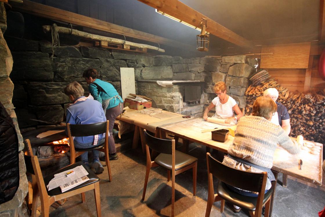 To laurdagar no i mai har medlemmer i Kinsarvik bygdekvinnelag samlast til flatbrødbaking i eldhuset på Bråvoll.