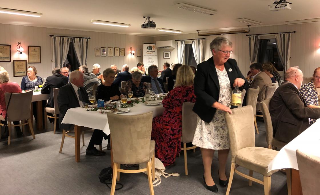 Leder May Gunn Horntvedt ønsket 50 festpyntet gjester velkommen og ledet oss fint gjennom kvelden.
