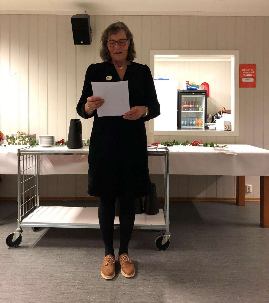 Kjersti H Kjærås og Irene Gjelstad Pettersen hadde skrevet en lang og fyldig jubileumsberetning som Kjersti leste opp.