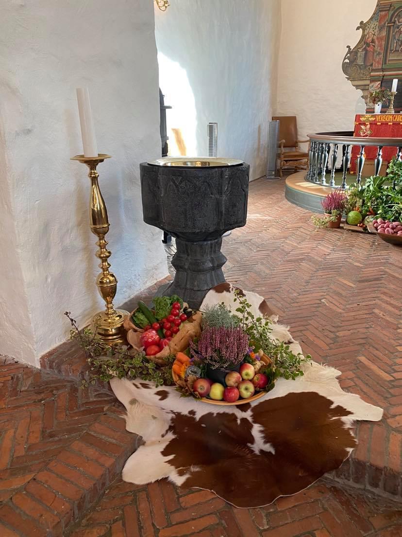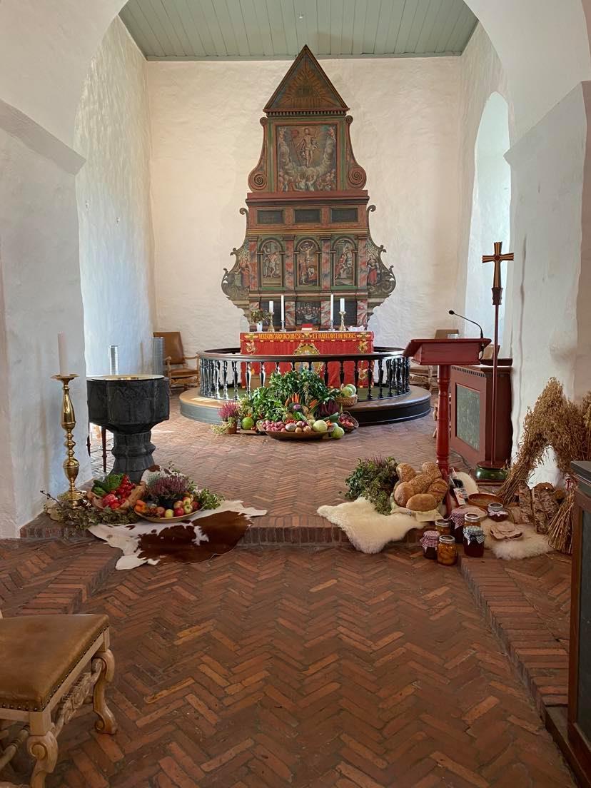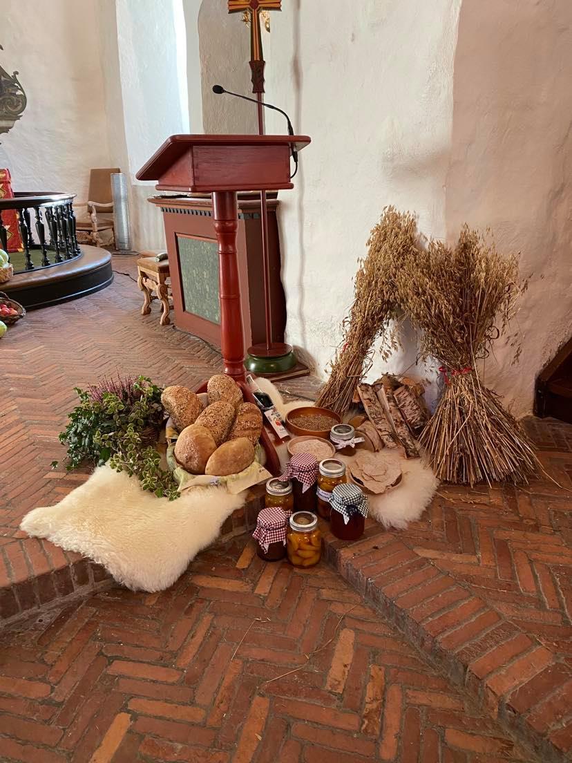"i tradisjons tro" pyntet Andebu bygdekvinnelag, Andebu kirke til høsttakke gudstjeneste 18. oktober 2020