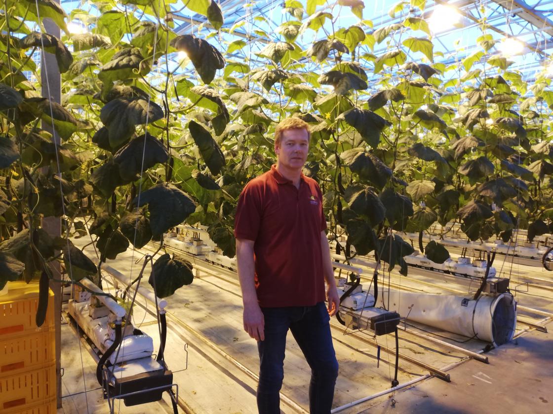 Vi fikk omvisning i produksjonslokalene og Kristian fortalte oss om den daglige driften. Agurken stammer fra India og er en mer enn 3000 år gammel kultur. Planten gir hele tiden nye agurker som er klare til høsting. Mye av produksjonen er automatisert, men beskjæring og høsting foregår manuelt.