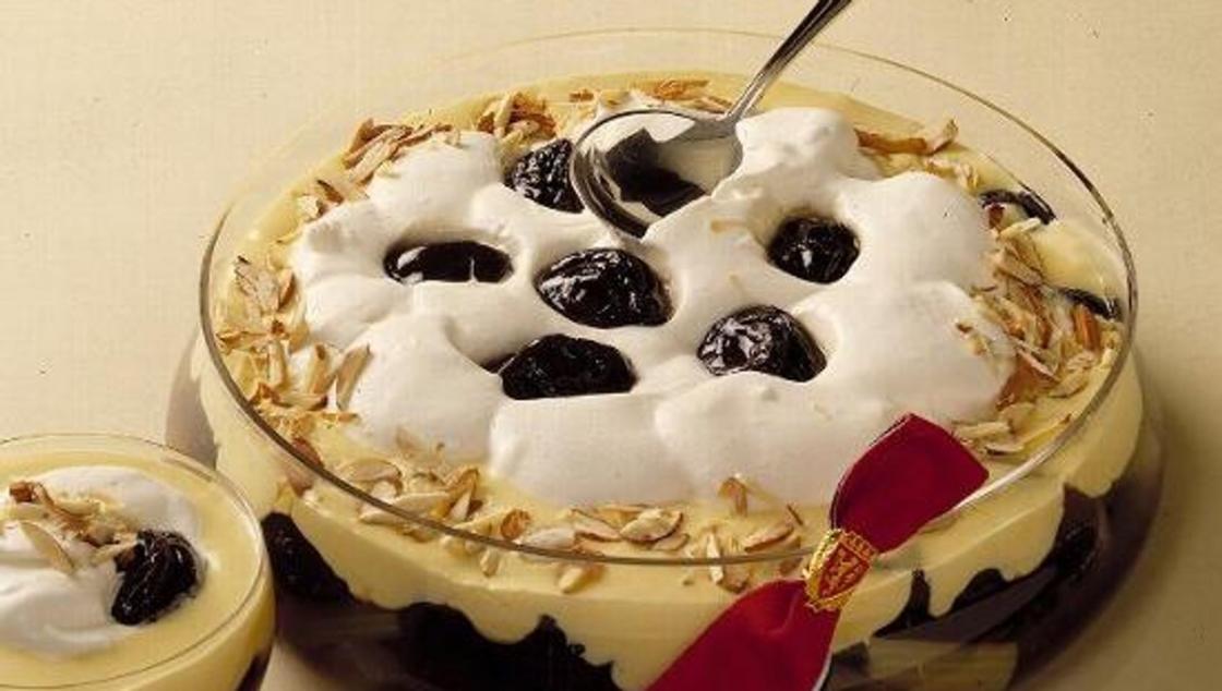 Litt pisket krem og evt. 1 ss sherry blandes inn før servering.