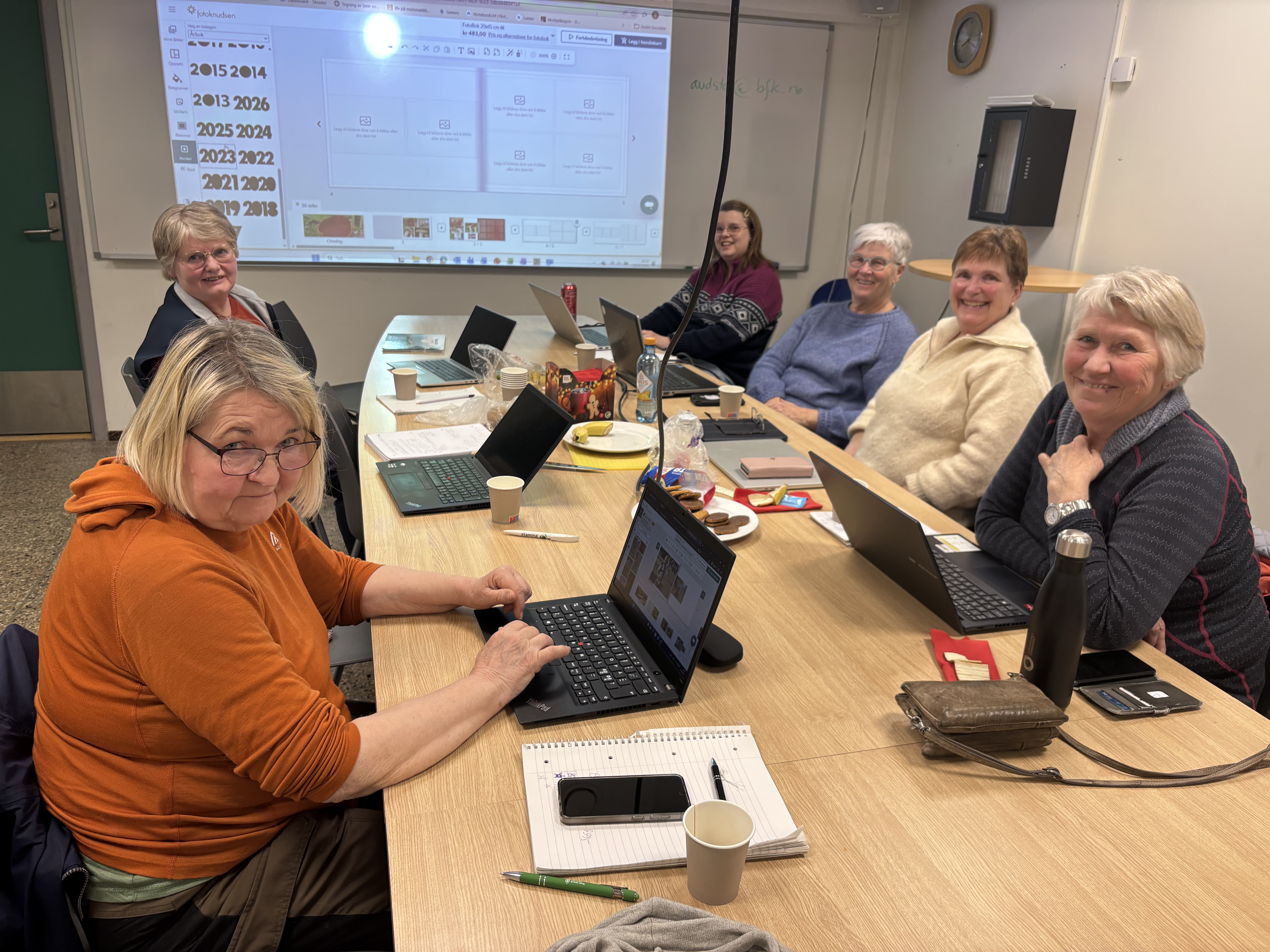 Damene som deltok på kurset lærte hvordan man kan lage fotobøker og kalendere på nettsiden til Fotoknudsen. Det ble gitt en grundig innføring i hvordan man bruker programmet på nettsiden. Etterpå satte damene ivrig i gang med hvert sitt prosjekt. Damene synes dette var moro og lærerikt!