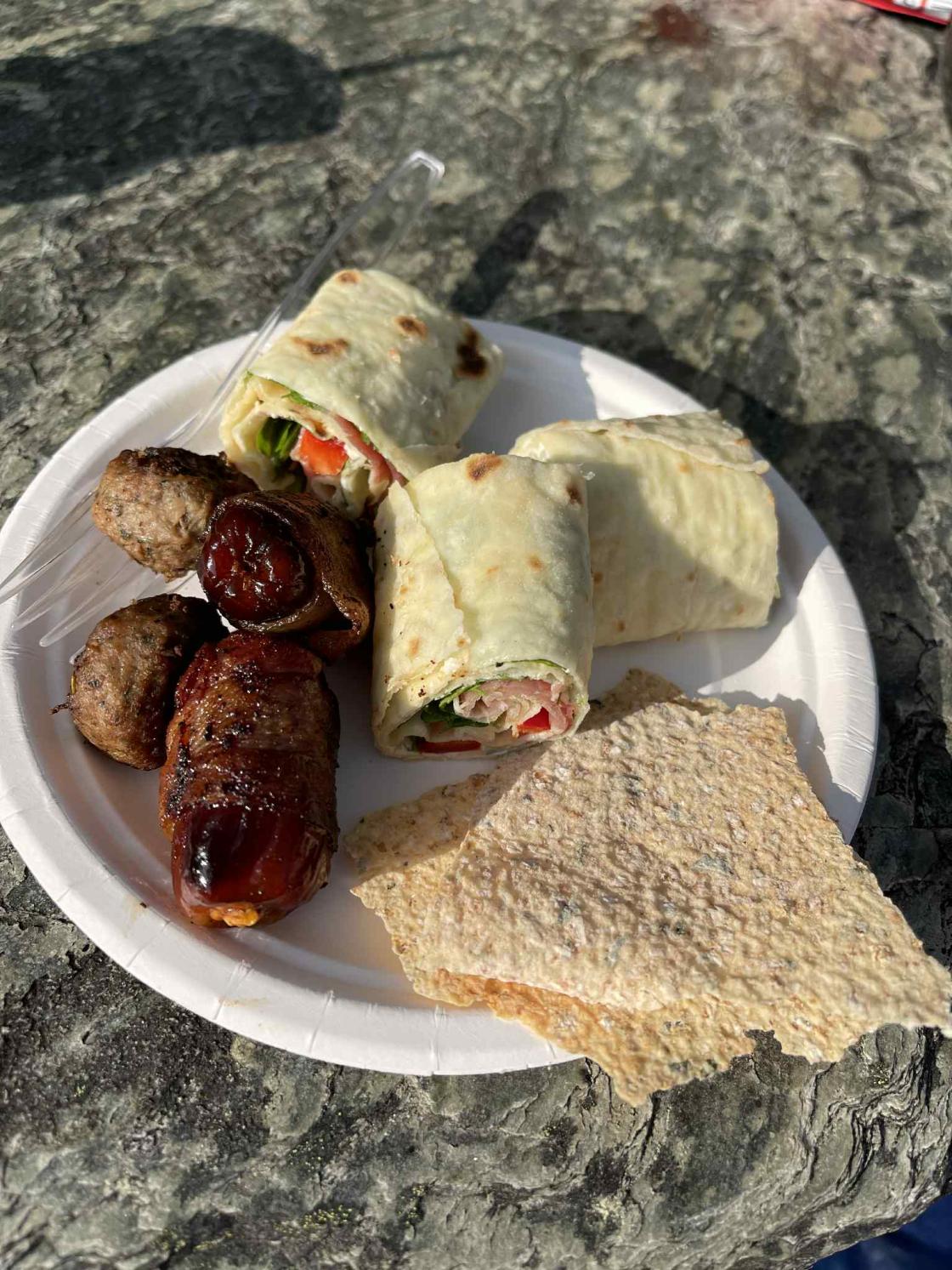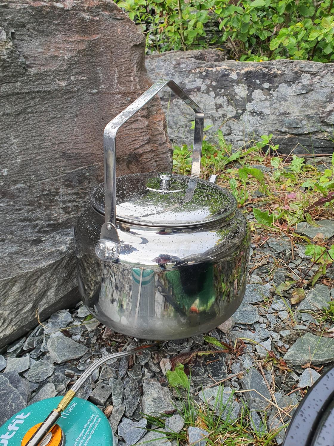 Bjørgum Bygdekvinnelag søkte og fekk prosjektmidler til markering av Friluftslivets år. Me har innvistert i kokeutstyr til utebruk. Denne kvelden diska bakegruppa opp med rabarbrasuppe til turgjengen, tapastallerken med lefseruller laga av potekake frå Mosstova, kjøttboller, dadler surra med bacon og urteflatbrød frå Mosstova i Folkedal. I tillegg hadde bakegruppa laga rabarbra-kake og muffins, som smaka ekstra godt saman med nylaga "skogskaffi".