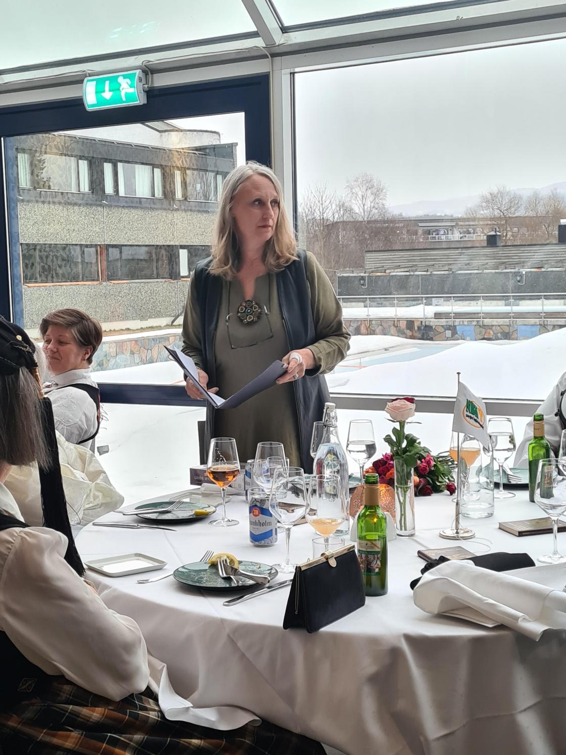 Det er ikkje vær dag en får en rose og et dikt, med det stopper ikkje hær. Åste Ulvenes tok oss med i en reise i tid. Der ho fortalte litt om historia til Bø Bygdekvinnelag. Helga Eika leste frå avisa Samhug, som er en avis som blei handskrive av medlemer i da Bø Bondekvinnelag som vart staret i 1931. Og skal si at latteren satt godt, for de skrev på rim og de hadde en god humor. Så håper på å få hørt meir frå Samhug.