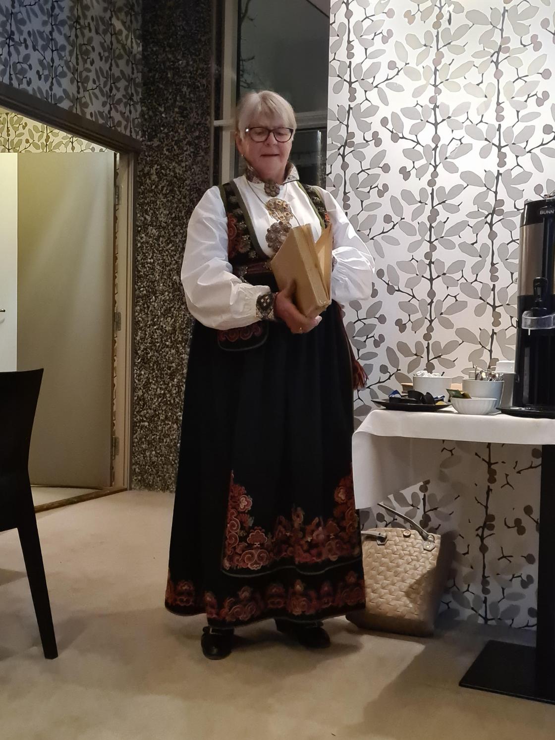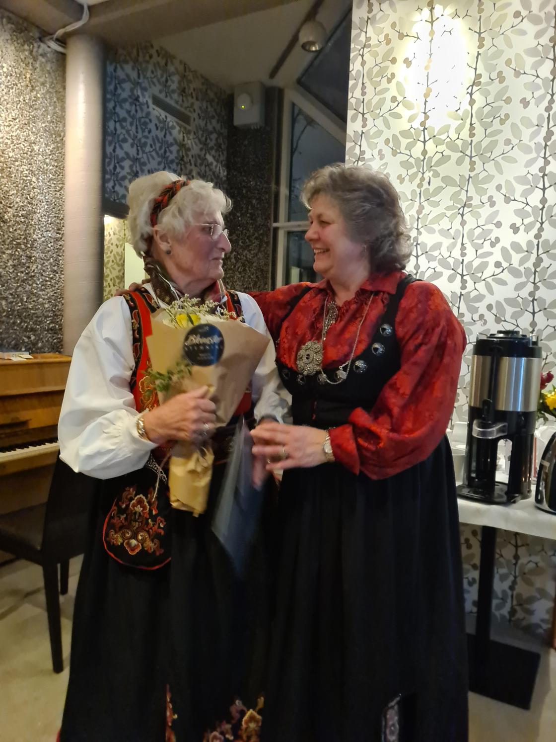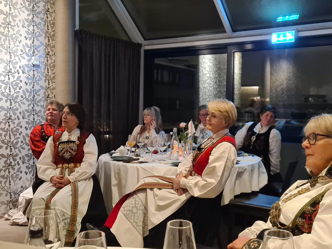 Skjorta er stryket og bunadsølet ligger klart, nå skal bunaden på. For når laget fyller 90+2 år da skal det feirast. Og stas blei det, med bunader frå fleire plasser i Norge også en frå Island. Dette var morosamt å sjå. Jubileume blei avhold på Bø Hotell der vi fikk to retters middag, for desserten hoppet vi over. Vi hadde et kakebord i steden. For vi regnet med at vi kommer til å bli gode og mette. Og det hadde vi rett i.