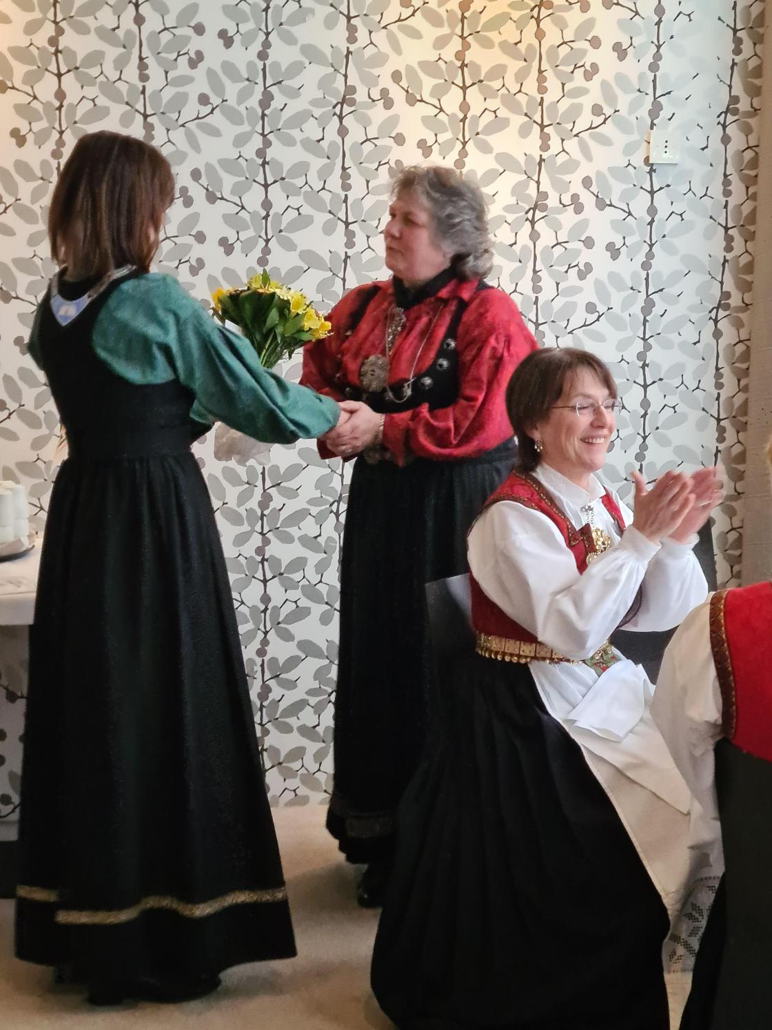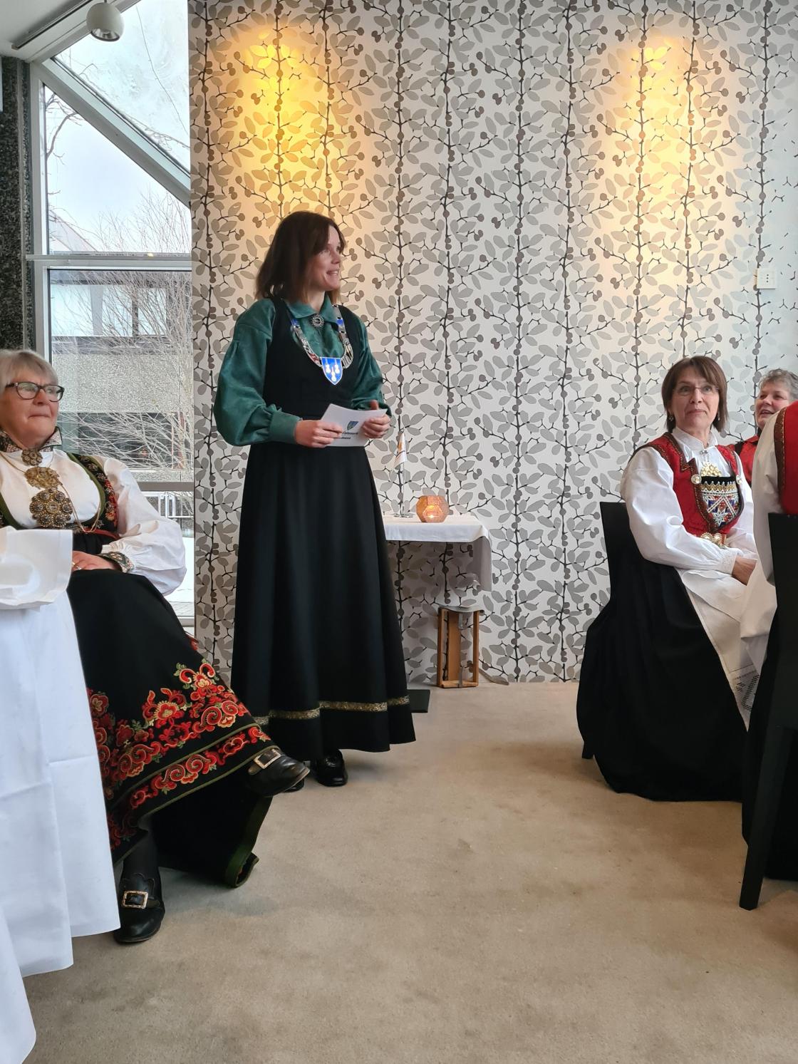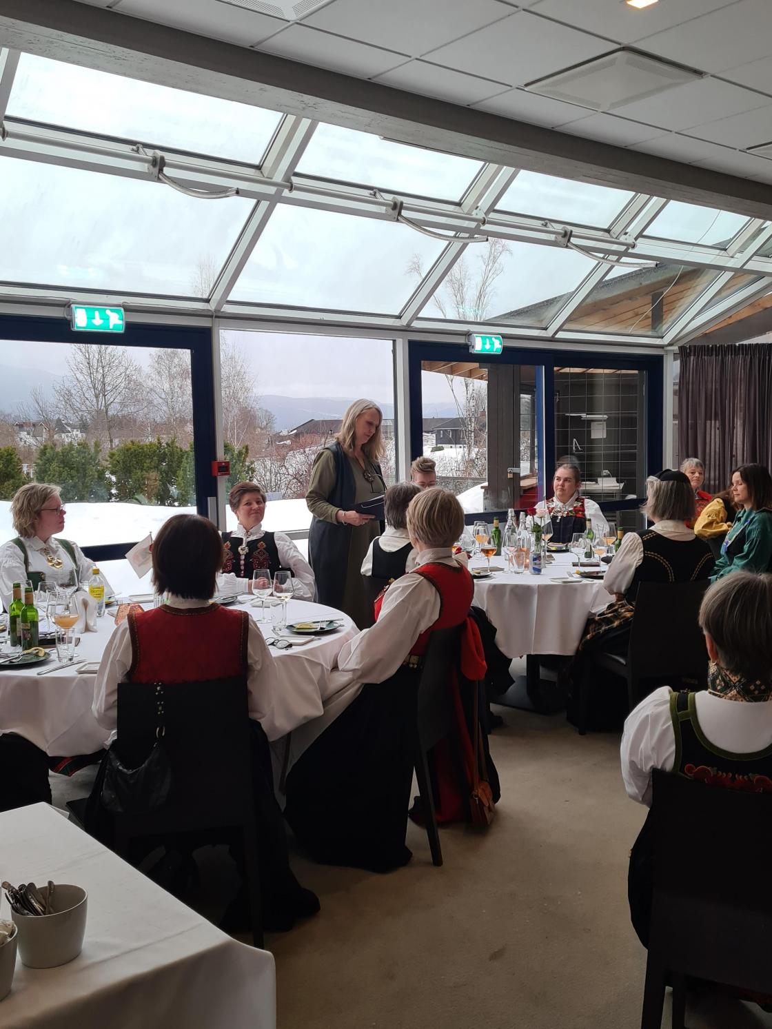 Skjorta er stryket og bunadsølet ligger klart, nå skal bunaden på. For når laget fyller 90+2 år da skal det feirast. Og stas blei det, med bunader frå fleire plasser i Norge også en frå Island. Dette var morosamt å sjå. Jubileume blei avhold på Bø Hotell der vi fikk to retters middag, for desserten hoppet vi over. Vi hadde et kakebord i steden. For vi regnet med at vi kommer til å bli gode og mette. Og det hadde vi rett i.