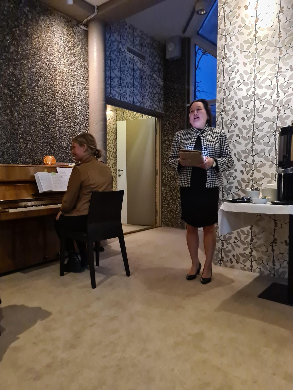 Vi fikk også besøk av to musikkere Mona Skruverud og Helene Haukvik som fylte rommet med vakker melodi og sang.