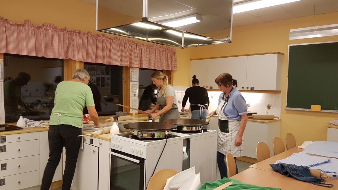 På tre dager har det blit baka flatbrød, kling og potetlefser. Det var god steminge i lokalet, og alle koste seg. Og de var klare for flere kurs, siste dagen blei det servert kaffe og te og smaksprøver på potetlefsene.