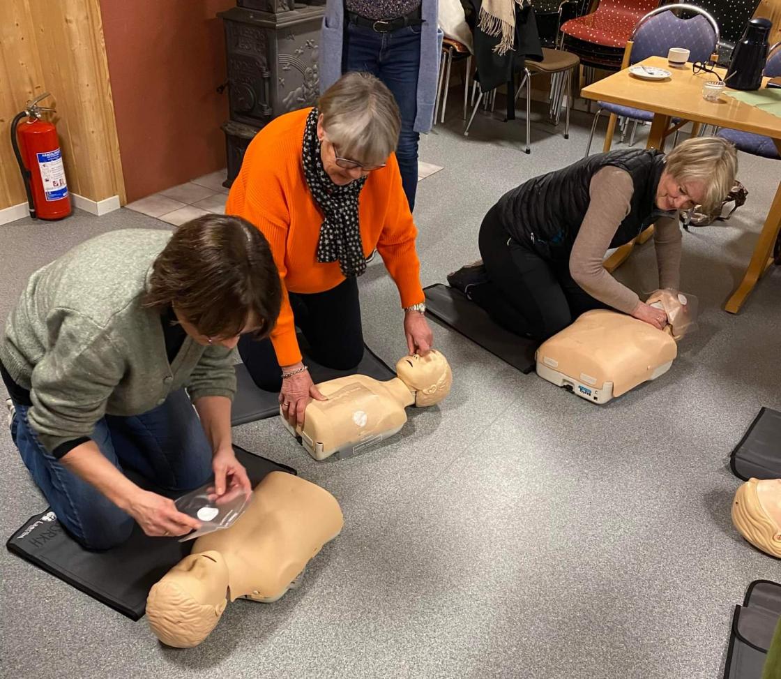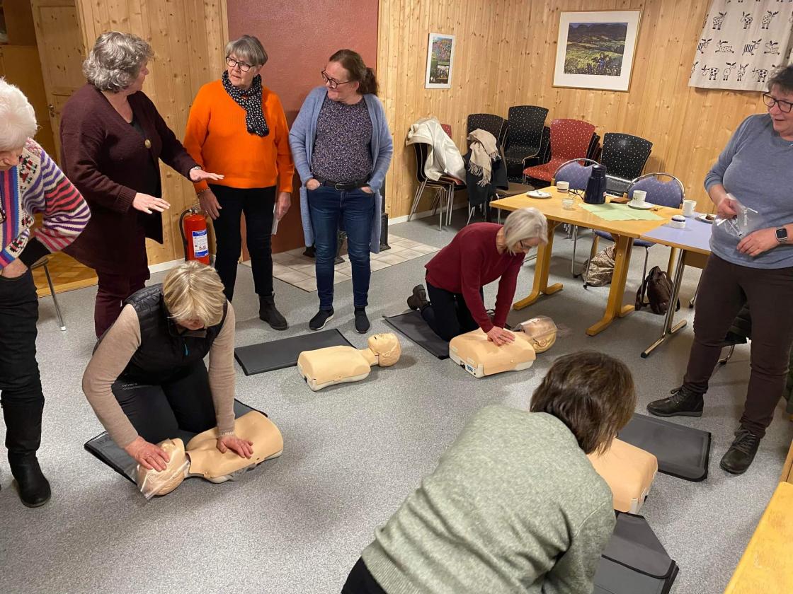 Den 28 februar stilte Røde Kors opp på Speiderhuset i Bø for å lære bort førstehjelp til bygdekvinene. 13 damer møte opp og var klar for å lære. Først var det en teori del og så fikk alle de som ville prøvd seg på å redde en voksen og en barne dukke.
