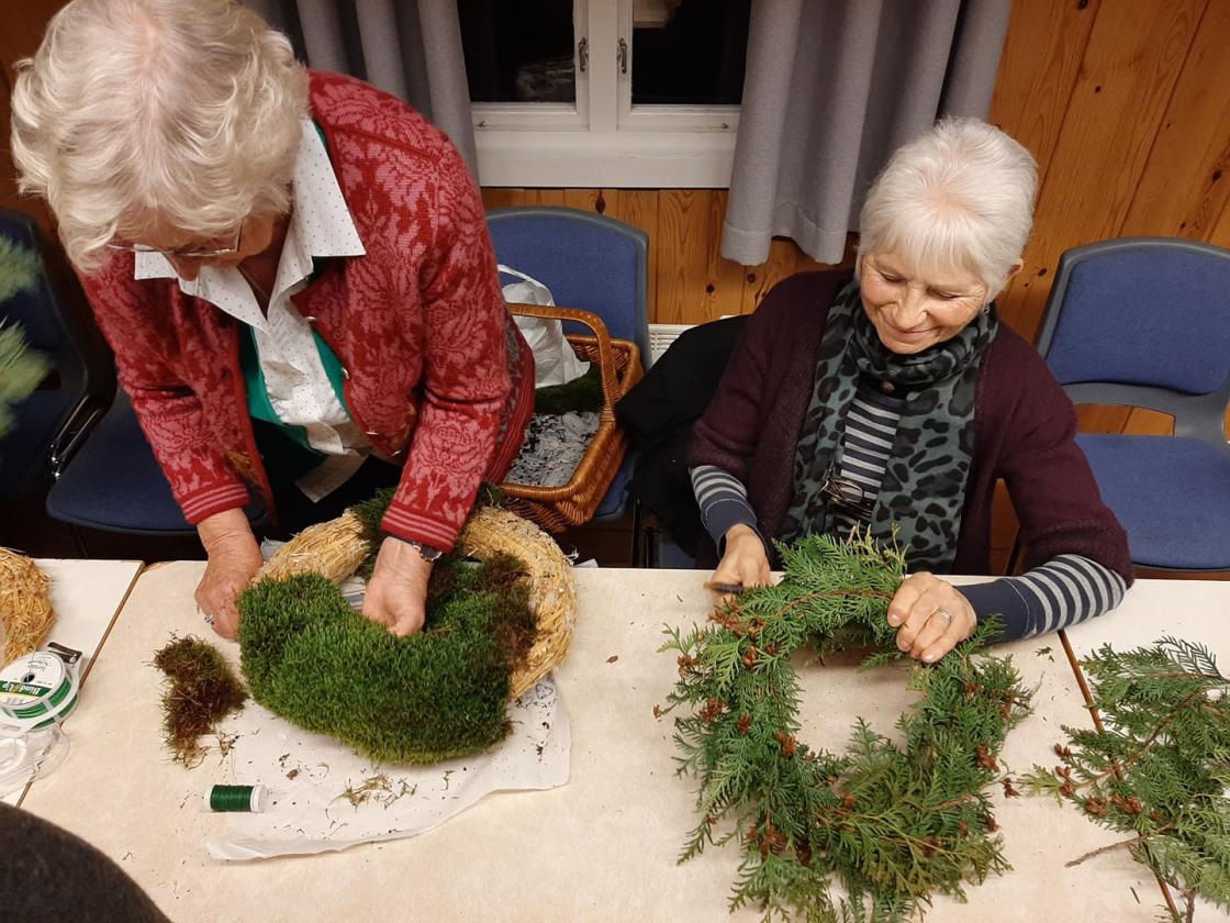 Det var 26 kreative damer møtte opp til en kjekt kveld. Hær skulle det lages mosenisser og kranser. Noen ønska å lage en av delene og andre rakk å lage begge. Det var Rønnaug som viste hvordan en skulle lage kranser og Bente vise oss hvordan vi laga mosenisse. Praten stod i mens det beli laget mange flotte kranser og nisser. Vi avslutta kvelden med risgrøt og rømmegrøt, spekemat og saft. Og loddsalg følte med.