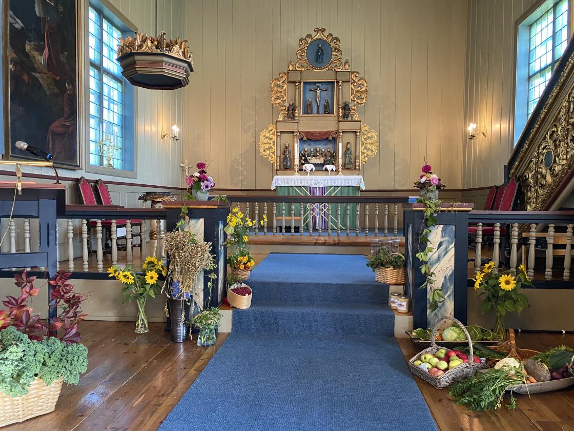 Pyntet til høsttakkefest i Nes kirke