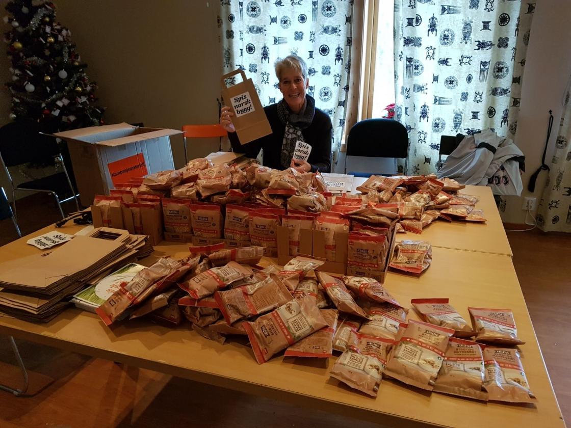Det ble delt ut poser med gratis byggprodukter og brosjyrer med oppskrifter, i håp om at det skal bli brukt mer bygg i matlagingen i norske hjem.