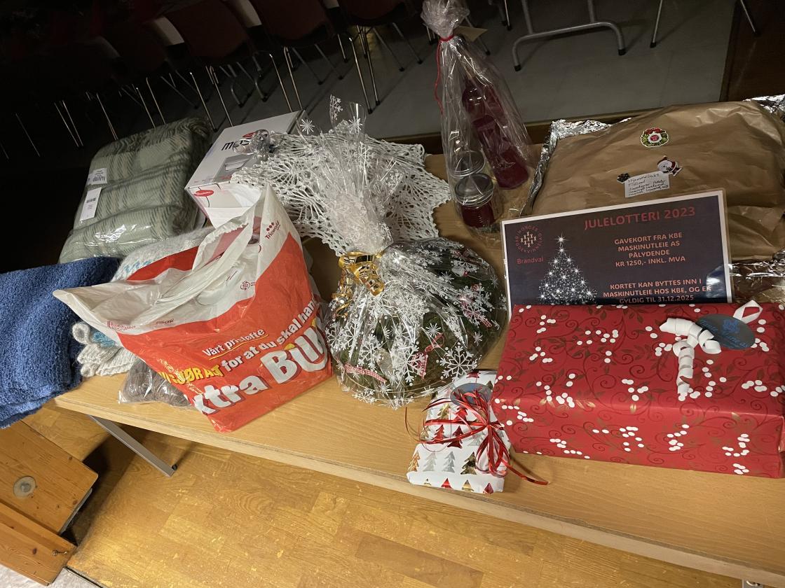 Vinnere i årets julelotteri ble presentert og vi tok med gevinster til de vi kjenner. Folk i bygda er flinke til å kjøpe lodd!