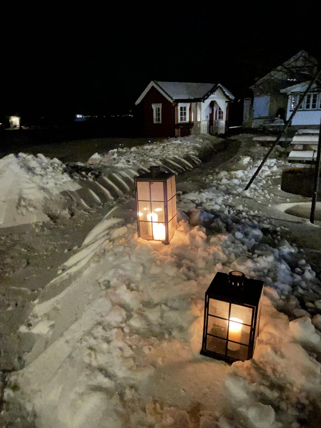 Grend 3 inviterte til Klokkertunet besøksgård denne tirsdagen i mars. Etter de siste dagers snøfall var det virkelig fin vinterstemning med måkte stier og tente lykter på veien opp til låven på Klokkertunet.