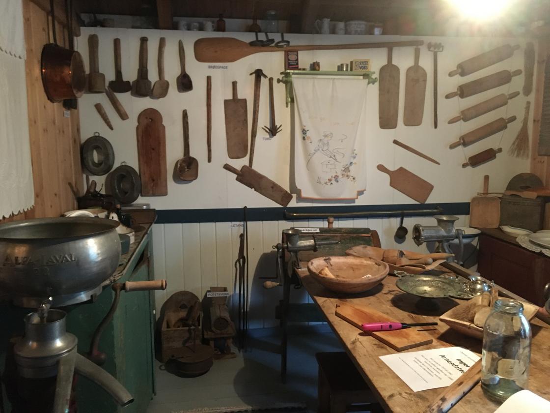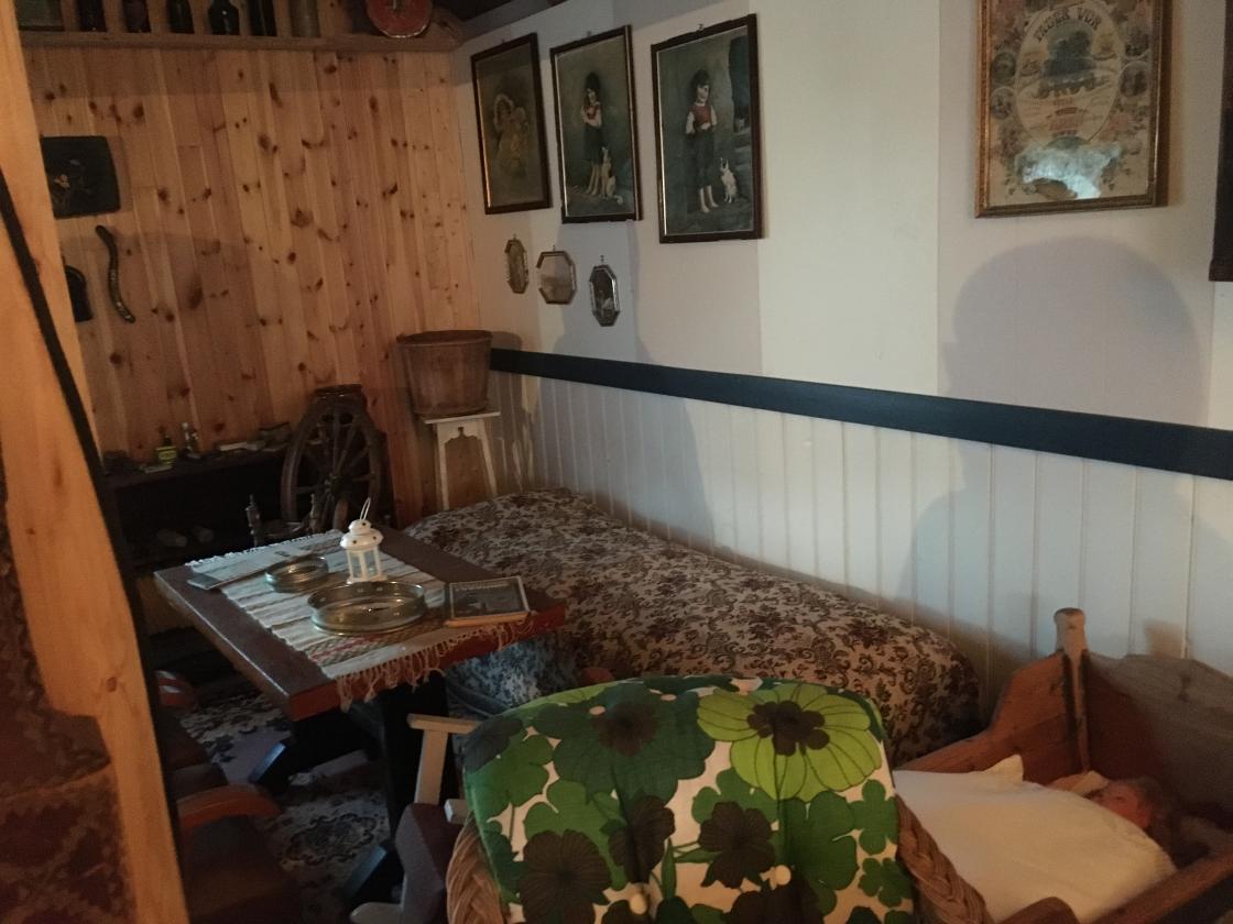 I "Gammelstun" er det innredet kjøkken og stue med møbler og husgeråd fra gamle dager.