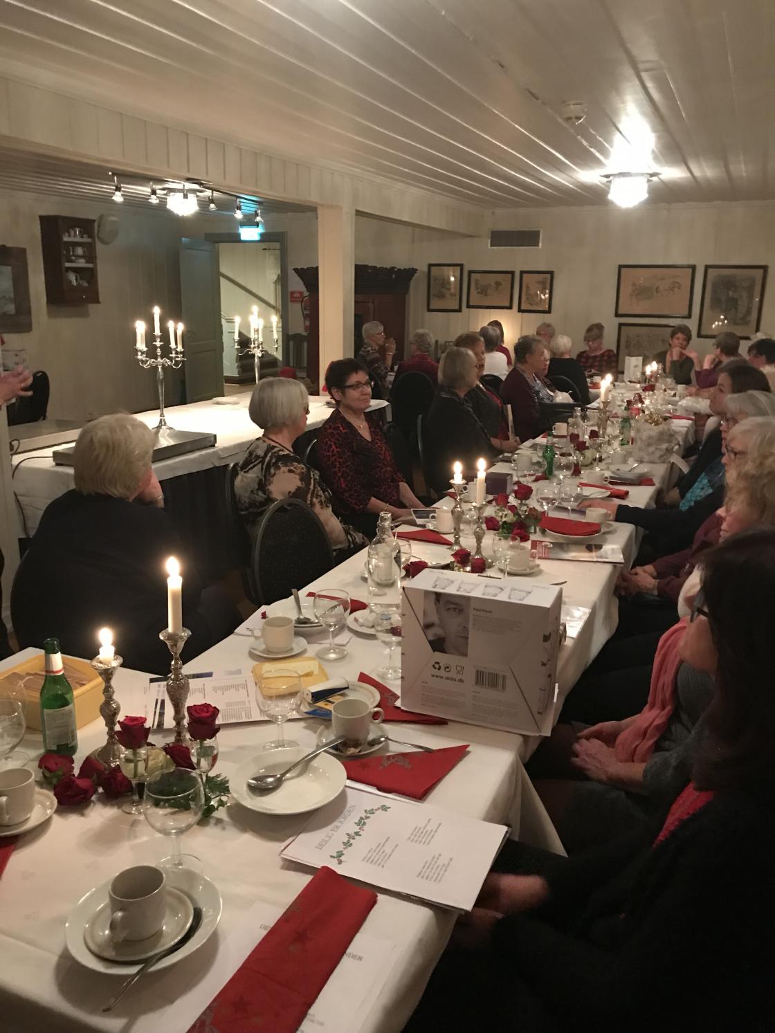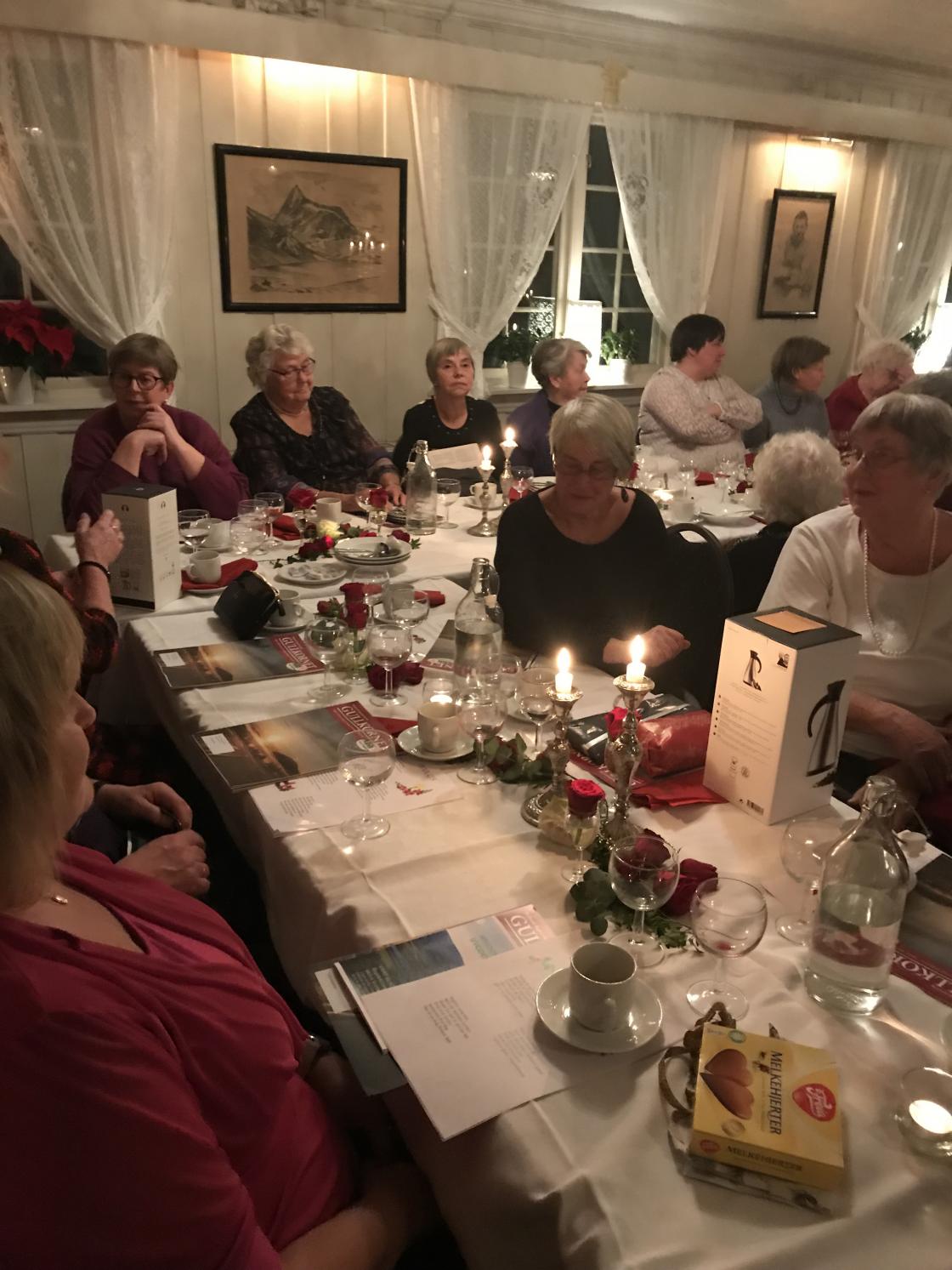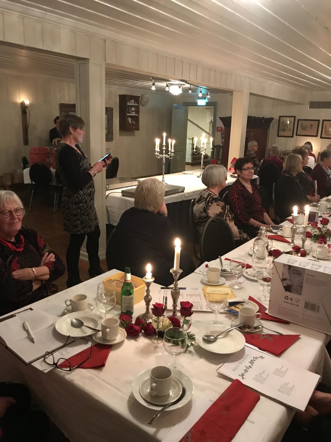 Denne kvelden fikk vi servert deilig lutefisk med tilbehør og dessert + kaffe. Praten gikk livlig rundt bordet. Det ble et koselig avbrekk i julestria. Etter maten var det loddsalg, og alle "årene" gikk unna i en fei. Mange fine gevinster ble delt ut.