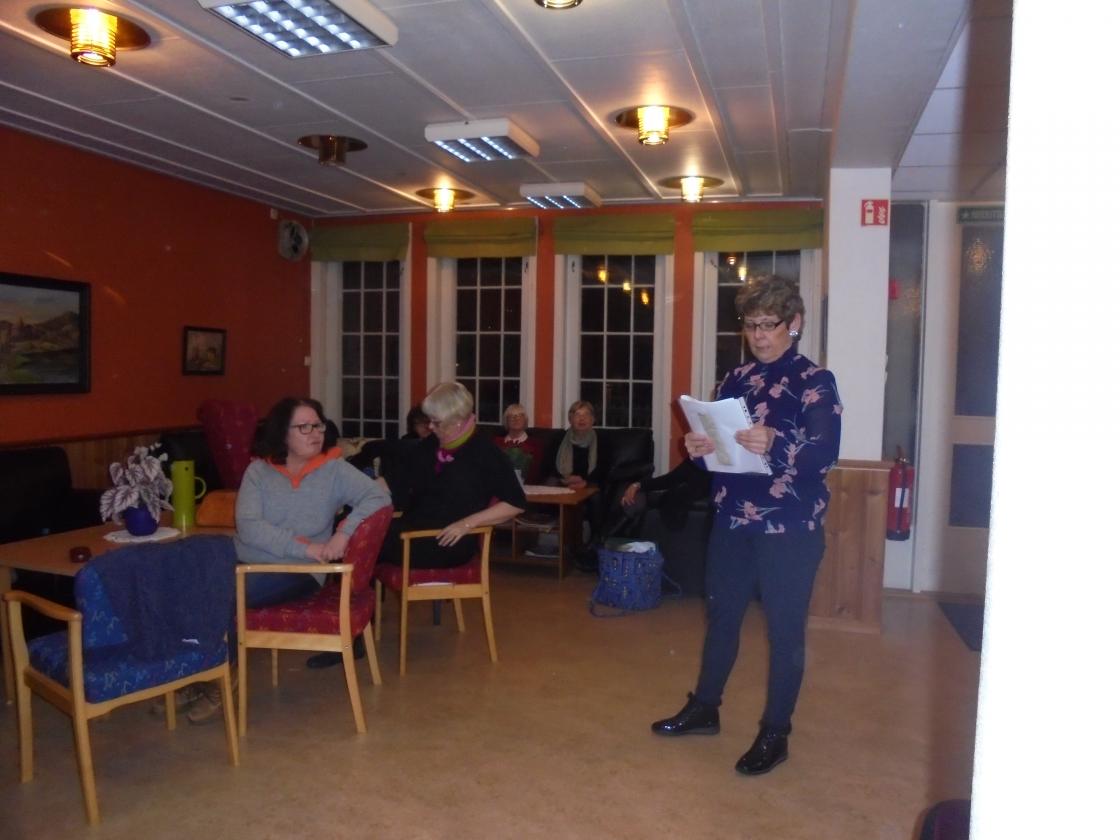 Guri Gjølstad Røhnebæk informerte om lagsaker som krafttak mot kreft, frivillighet - intergrering, regionmøte og årsmøte.