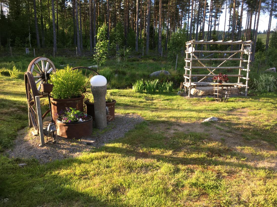 Elisabeth og Martin har laget seg en fin uteplass og hage i tilknytning til sommerfjøset. Vi var heldige med været så vi kunne sitte ute å nyte den fine plassen.