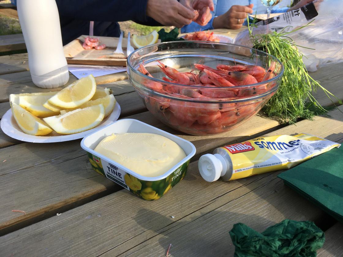 På menyen sto loff, reker og annet tilbehør. Det ble også servert Kvæfjordkake (Verdens beste) og kaffe.