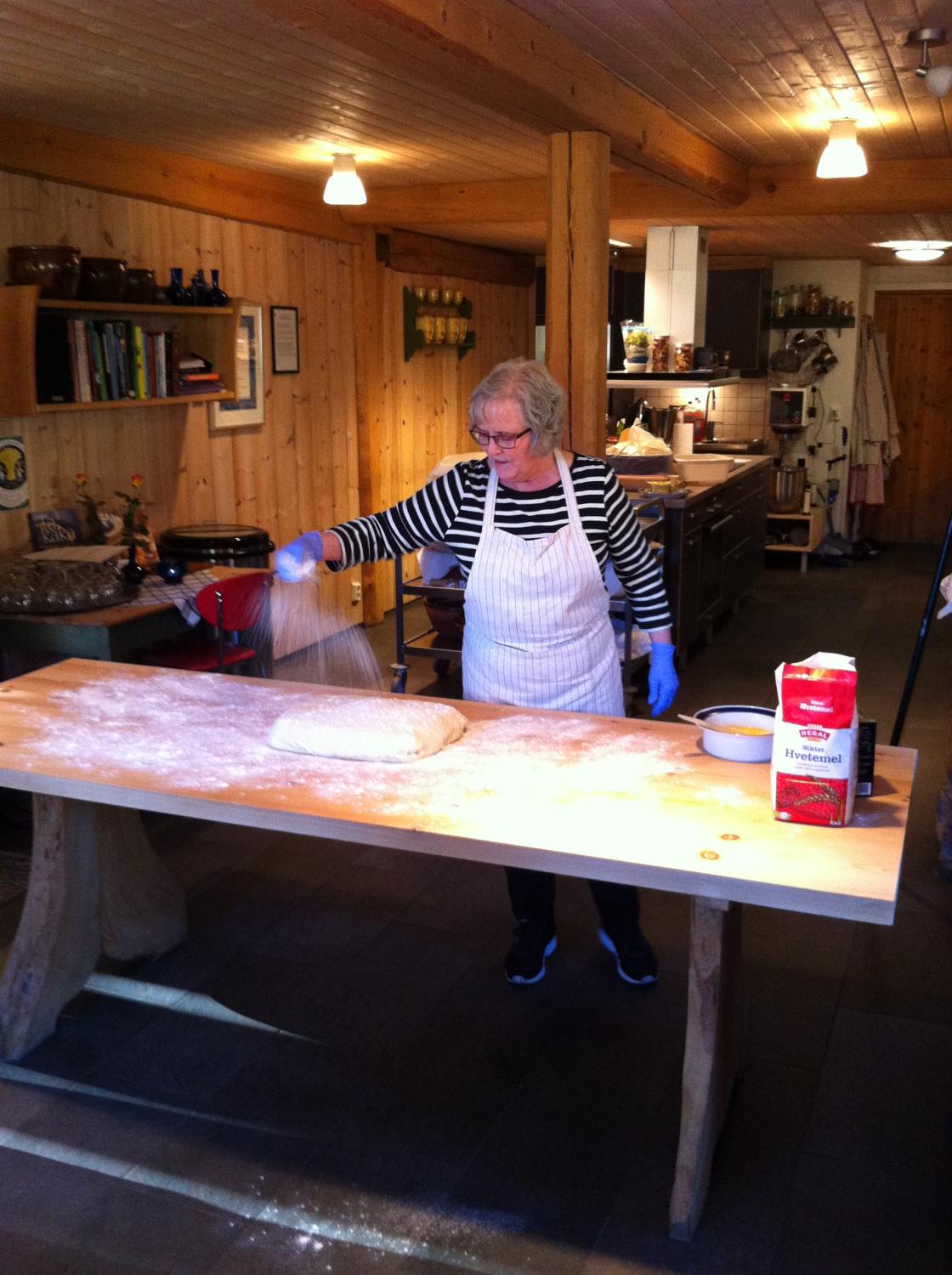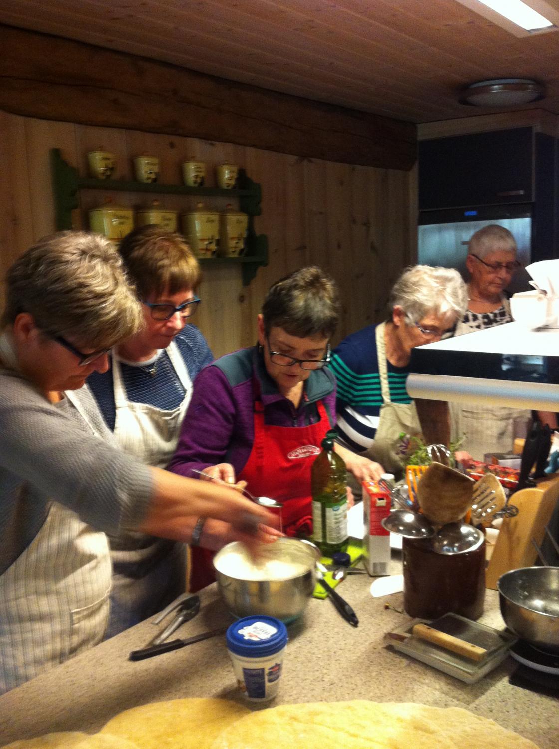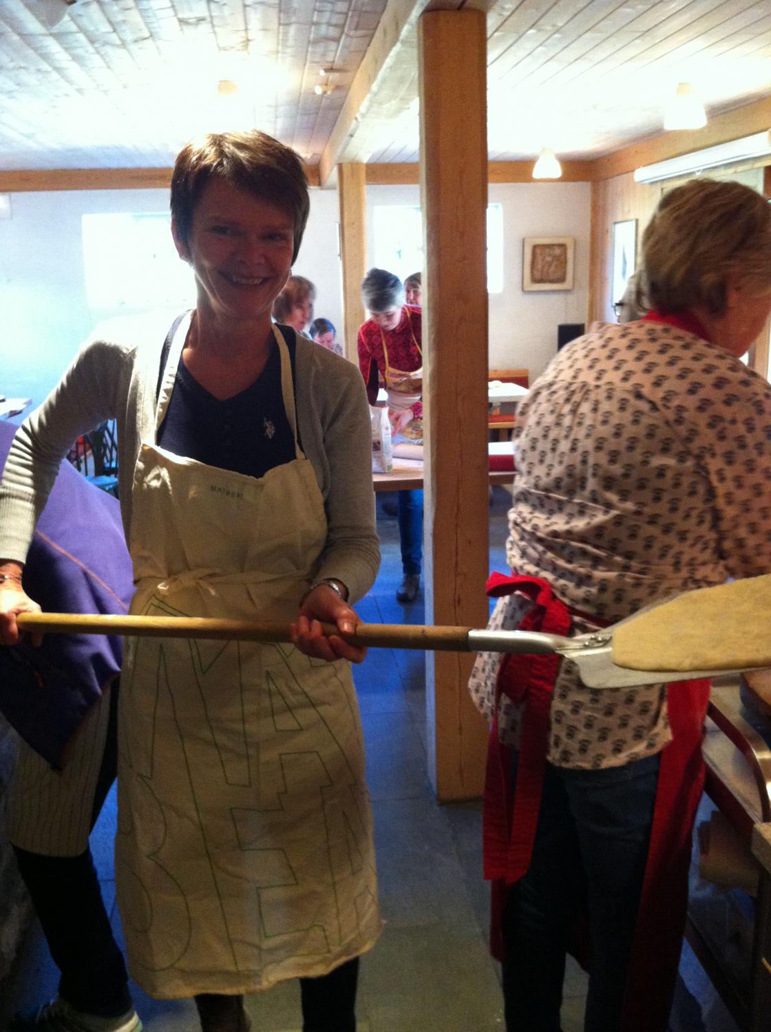 Breim Bygdekvinnelag på pizza- og bollebaking på Fjorddamattunet med Kari Støfringdal.