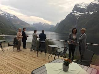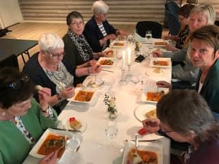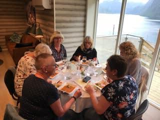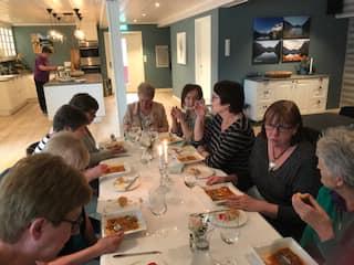 Torsdag 25/4 var vi 35 damer som reiste til Kleppenes Gard i Hyen. Her fekk vi servert kjempegod mexicansk tomatsuppe med tilbehør, og nydeleg kake til kaffien. Det var god stemning og Anne Karin Kleppenes fortalde om historia til Kleppeneset og livet der. Ein fantastisk plass med flott utsikt over Hyefjorden. Var bra heldige med vêret, sjøl om vi valde den eine dagen med litt regn i lufta, og fekk sjå oss litt om ute og på Stabburet der det heile starta. Her var det plass til 24 gjester, no er fjøsen ombygd til flott selskapslokale. Ein plass vi kan anbefale på det varmaste. Vi kjem gjerne att, her held dei og tapaskurs som vi kan og få til i regi av Bygdekvinnelaget om det er interesse for det. Takk for en kjekk kveld ilag, bygdekvinner.