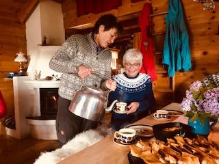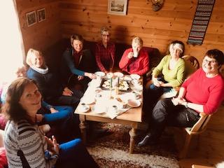 Vi var 14 damer som tok turen til Kvilastøylen og selet til Hilde. Vi hadde en liten spasertur opp Futevegen før vi gjekk tilbake til selet, der Hilde hadde fyrt slik at det var godt og varmt. Kjekt å komme inn i varmen etter turen der vi hadde både haglbyger og sol innimellom. Flott tur i lag med kjekke damer og storslått natur Stor takk til Hilde som stilte opp med ope "hus" for alle sammen.