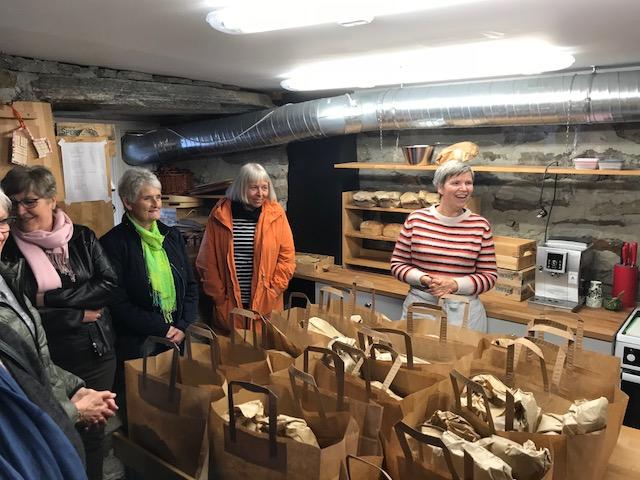 På vegen til museet la vi turen innom Erketunet. Her stod Jenny-Marie Håland klar med nystekte brød til oss. Desse fekk rask omsetning.
