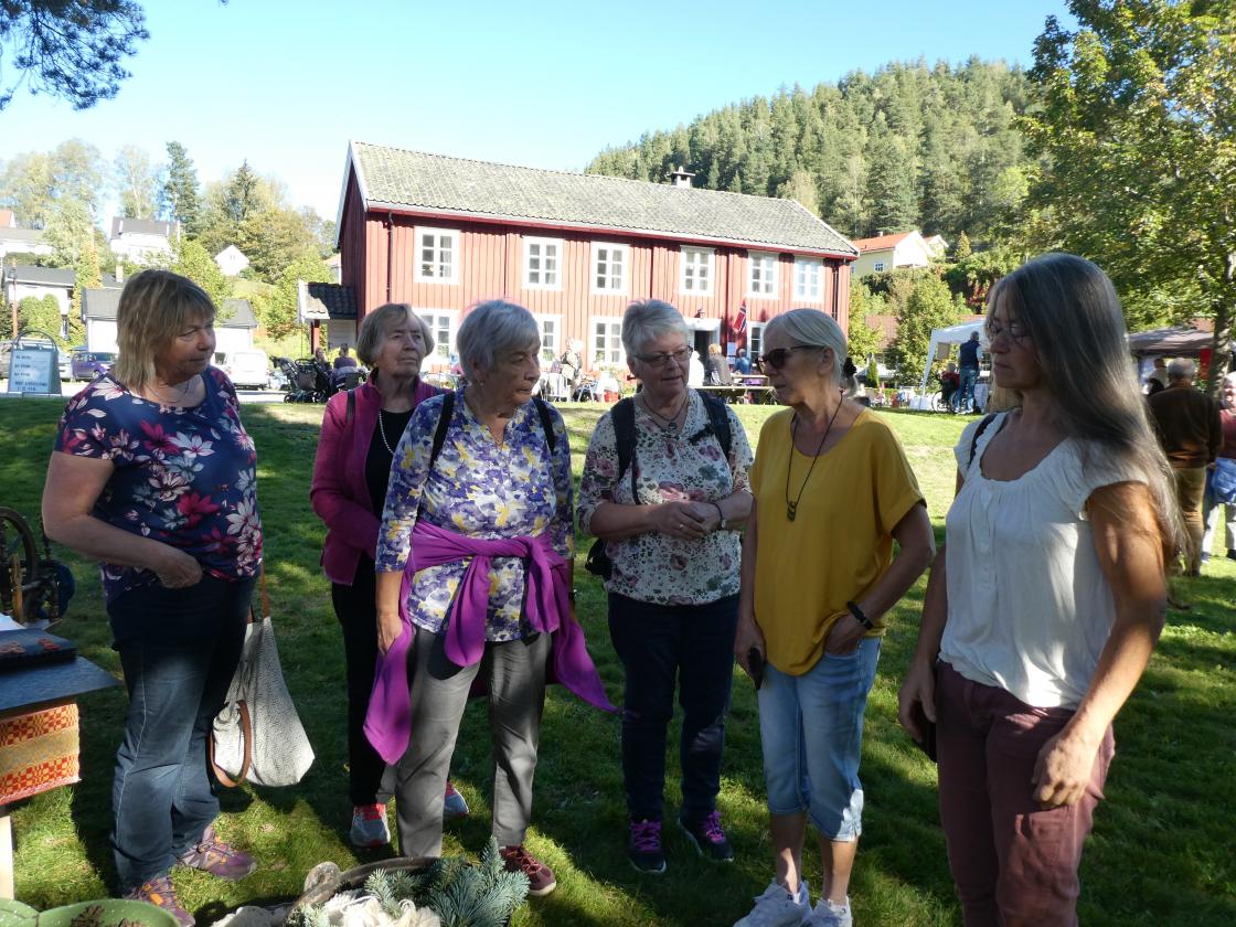 Vi våknet opp til en strålende høstdag som fikk sommertemperaturer denne dagen. Etter en lang og god frokost gikk turen videre nedover Sigdal. Det var fantastisk å se jorde etter jorde der bøndene var i full sving med den siste slåtten for i år. Det ble baller for grass og halm i hopetall. Sigdal er Eventyrdalen, men vi lot museum være museum. Vårt mål var høstmarkedet på Duvelgården i Skotselv. Birgit (barnefødt i Dagali) og Ingar Midtgård tok godt i mot oss. De er aktive i henholdsvis bygdekvinnelaget og Duvelgårdens venner. Det var disse lagene som arrangerte høstmarkedet.