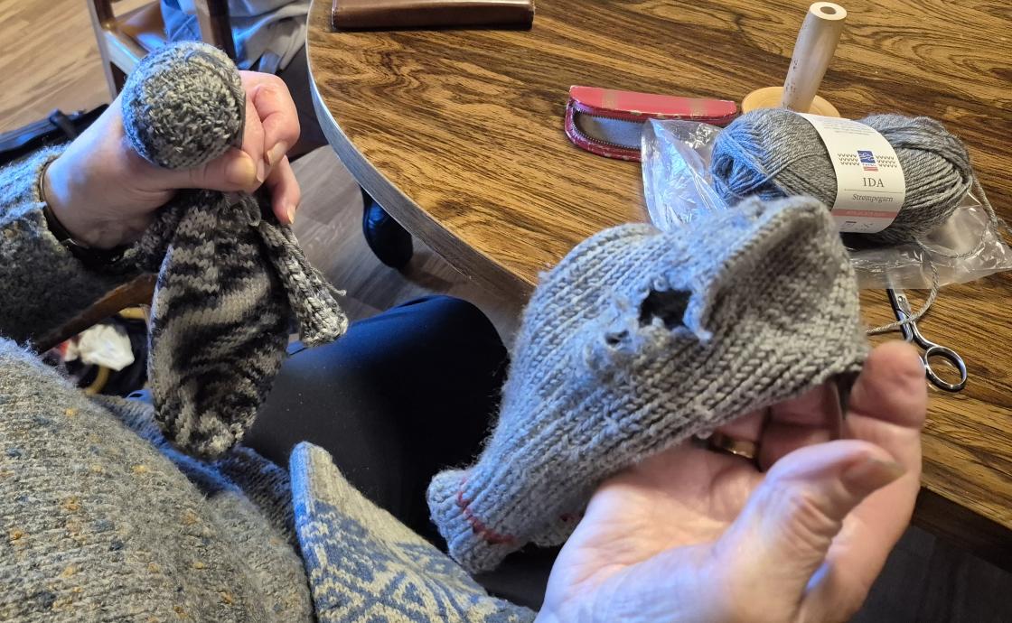 Hull i buksa, sokken eller noe annet. Egna lapper og / eller garn måtte tas med. Vi stilte med symaskin.