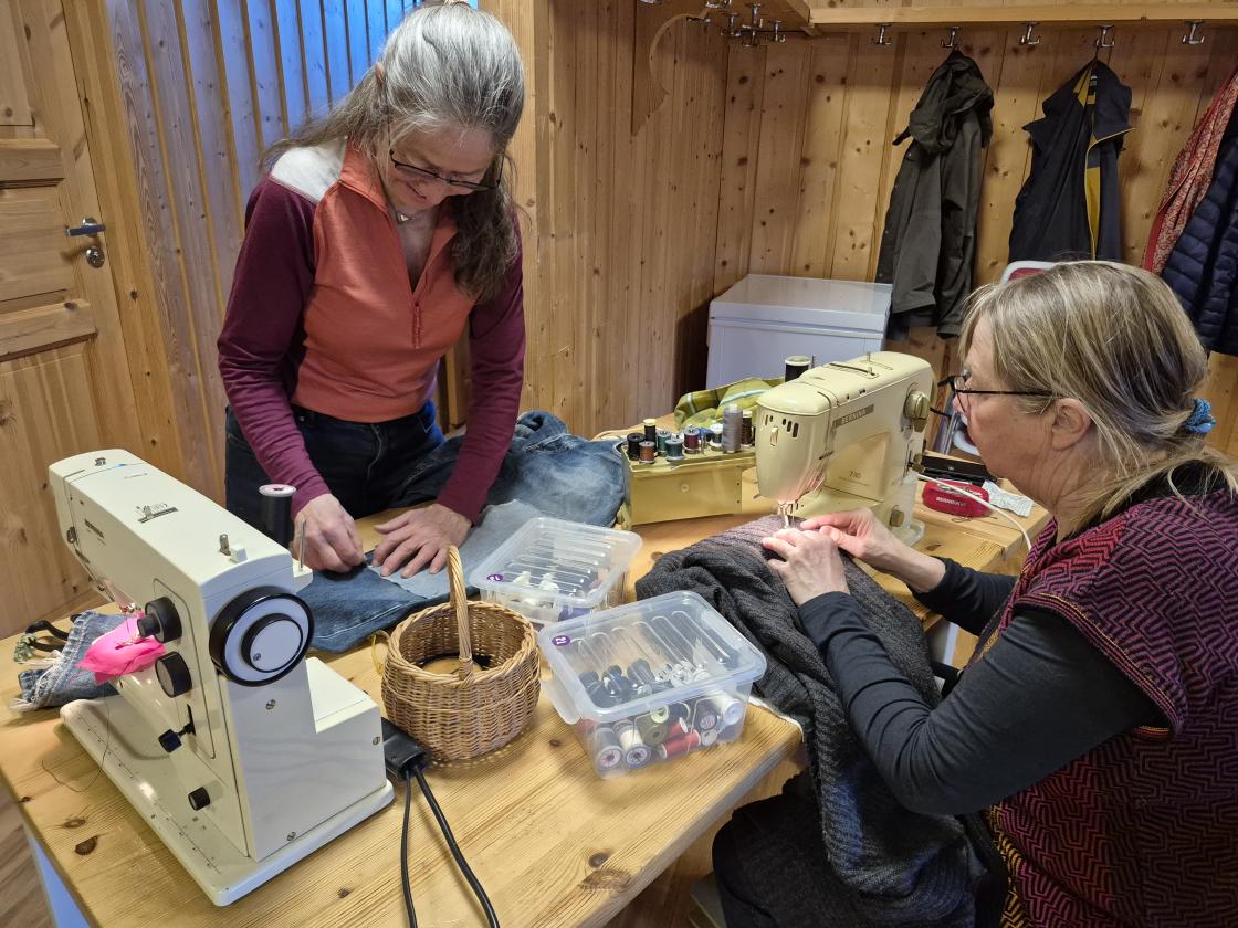Vi hjalp hverandre der det var nødvendig. For eks.: Ei jakke som var for stor, ble sydd inn.