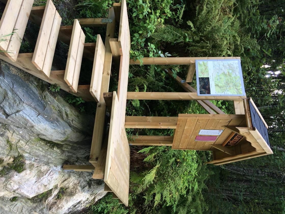 No er prosjektet på det næraste ferdig. Me har fått opp ei plakat-tavle med kart som viser alternative stiar og turvegar i området og skilt som viser veg opp til gapahuken. Her manglar det no berre litt betre merking av vegen vidare oppover.