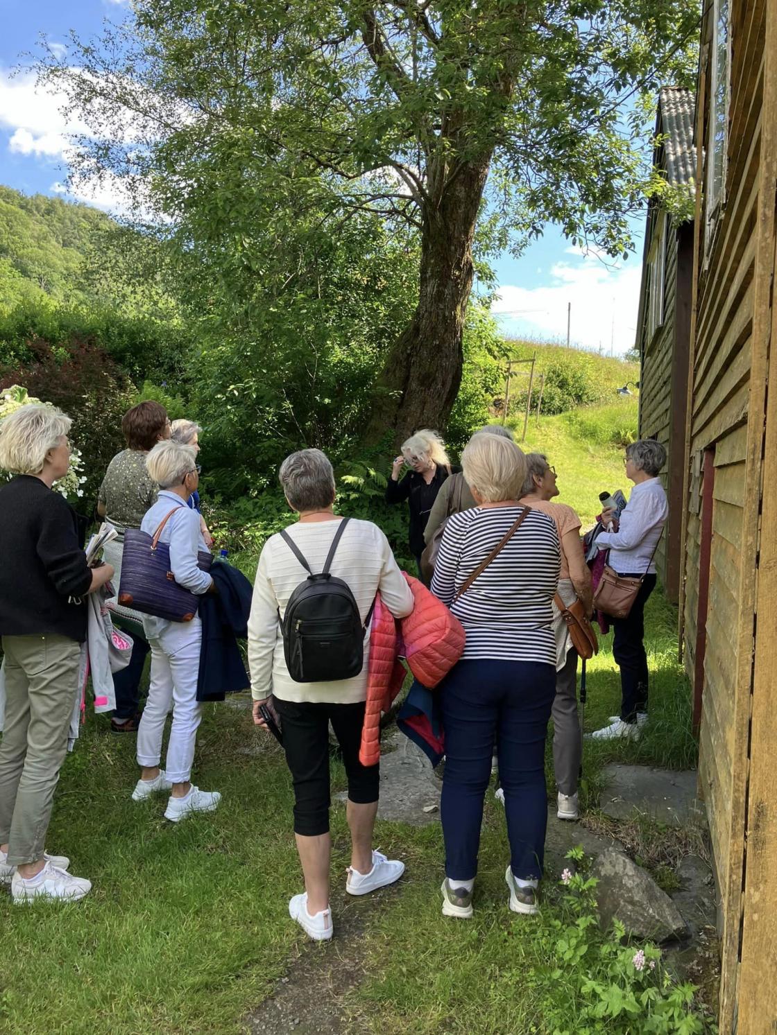 Osterøy er ein stad me berre køyrer forbi på veg til Bergen og som mange ikkje har besøkt. Denne gongen var me 11 damer i bussen + ein stødig kvinnelig sjåfør, Åse Britt, som køyrde oss dit me ville og venta tålmodig kvar gong me stoppa. Fyrste stopp var Valestrand der me hadde tinga kaffi og nysteikte bollar hjå Krisztina på Eides kafé og Garnhandleri. Her var det ikkje berre god kaffi og boller å få kjøpt men garn, møster og alt ein kan tenkja seg av strikketilbehør. Her fekk me topp service og kosa oss skikkelig i den trivelege kafeen. Etterpå var planen å sjå på Ole Bull huset på Valestrand,men det endte med at me berre fekk med oss eit rosa hus i ein park som ikkje såg ut til vera berekna på turistbesøk så me sette kursen mot Lonevåg, kommunesentret på Osterøy. Her hadde me ein kort stopp og kikka litt i butikkane før me drog vidare.
