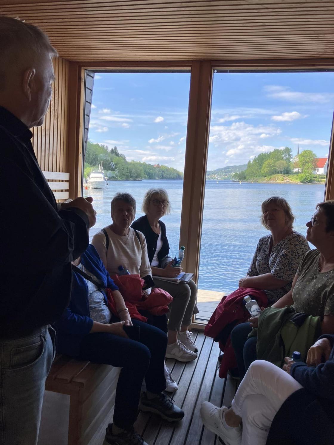 Etter to timer med utruleg mykje informasjon tok me oss ein ispause på den koselige landhandelen i Mjøsvågen før me sette kursen mot Fotlandsvågen og Fjordslottet hotell der me hadde bestilt middag. Her fekk me eit nydeleg måltid med svinesteik med godt tibehør og Panna cotta til dessert. Mette og litt «segne» sette me kursen heimover etter ein tur med god stemning og mange nye inntrykk frå stader me ikkje hadde besøkt før.